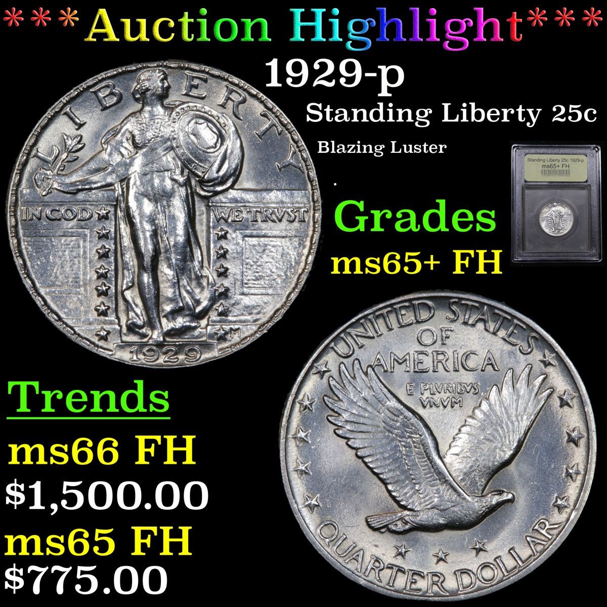 ***Auction Highlight*** 1929-p Standing Liberty Quarter 25c Graded GEM+ FH By USCG.         A Corey's Pick, Bid to Win Coin