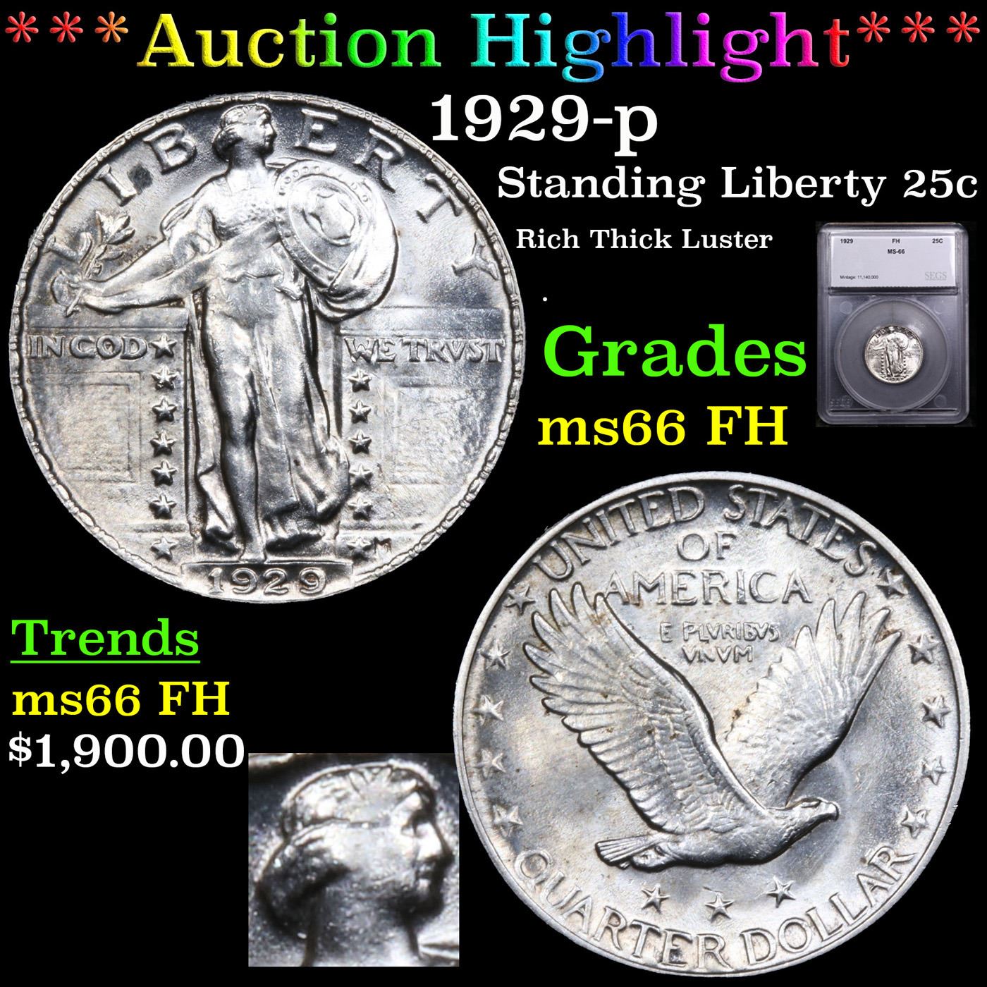 ***Auction Highlight*** 1929-p Standing Liberty Quarter 25c Graded ms66 FH BY SEGS.