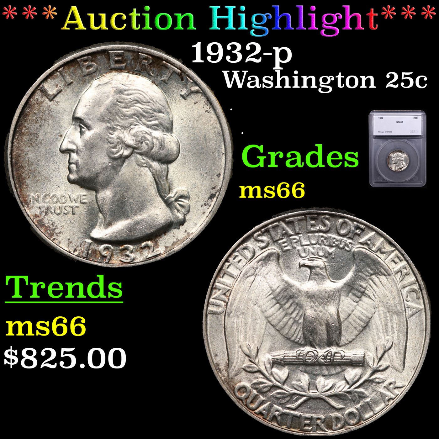 ***Auction Highlight*** 1932-p Washington Quarter 25c Graded ms66 BY SEGS.
