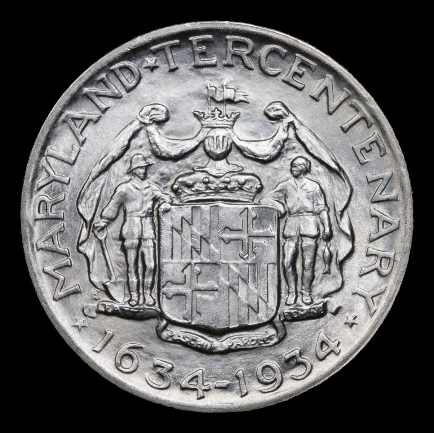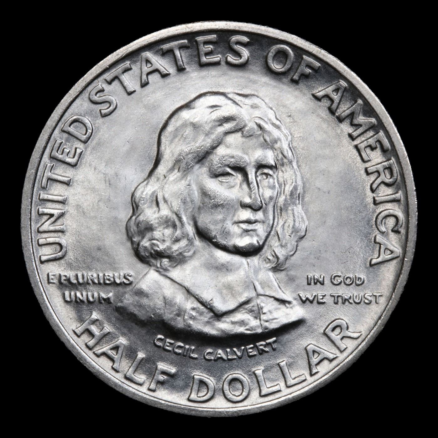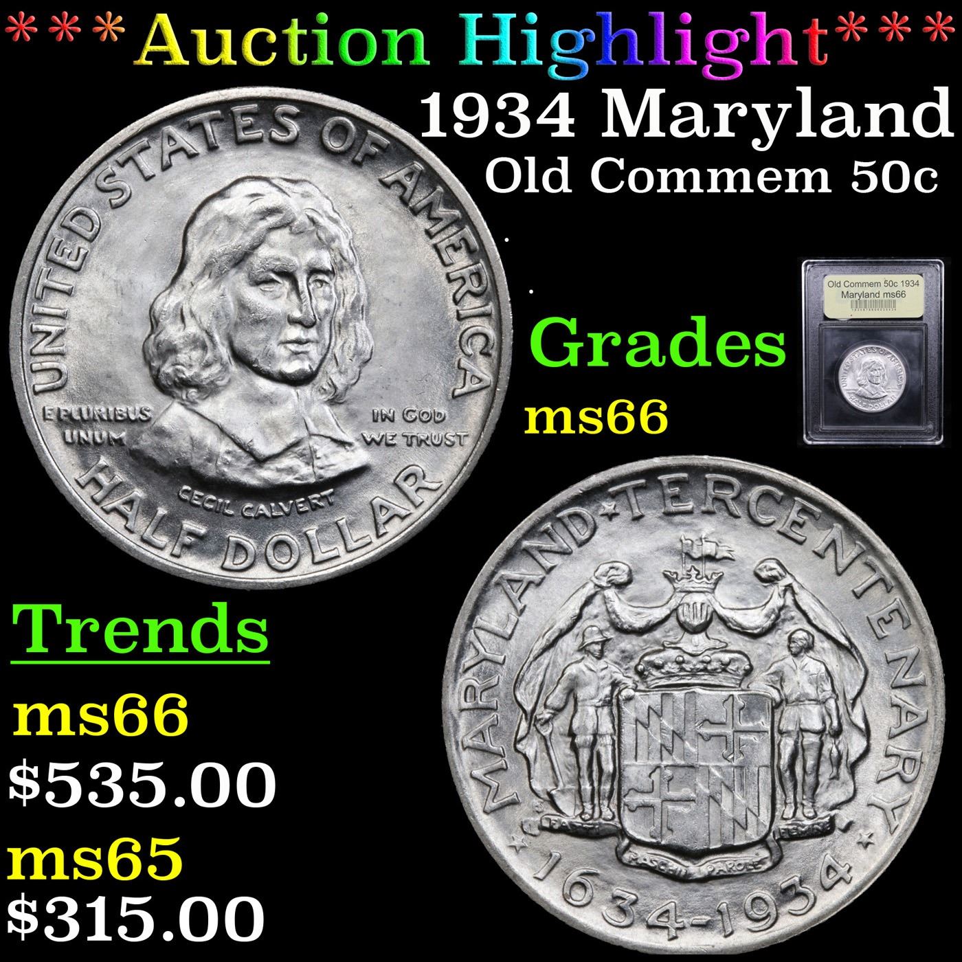***Auction Highlight*** 1934 Maryland Old Commem Half Dollar 50c Graded GEM+ Unc BY USCG. Great Example of the Maryland Commemorative, one of the first Commemoratives issued after the hiatus of 1929-1933 when no Commemoratives were issued. When looking at a Maryland Commemorative look for signs of wear on Calvert’s nose, as well as on the top coronet (with flags) and the adjacent mantling. A Corey's Pick, Bid to Win Coin