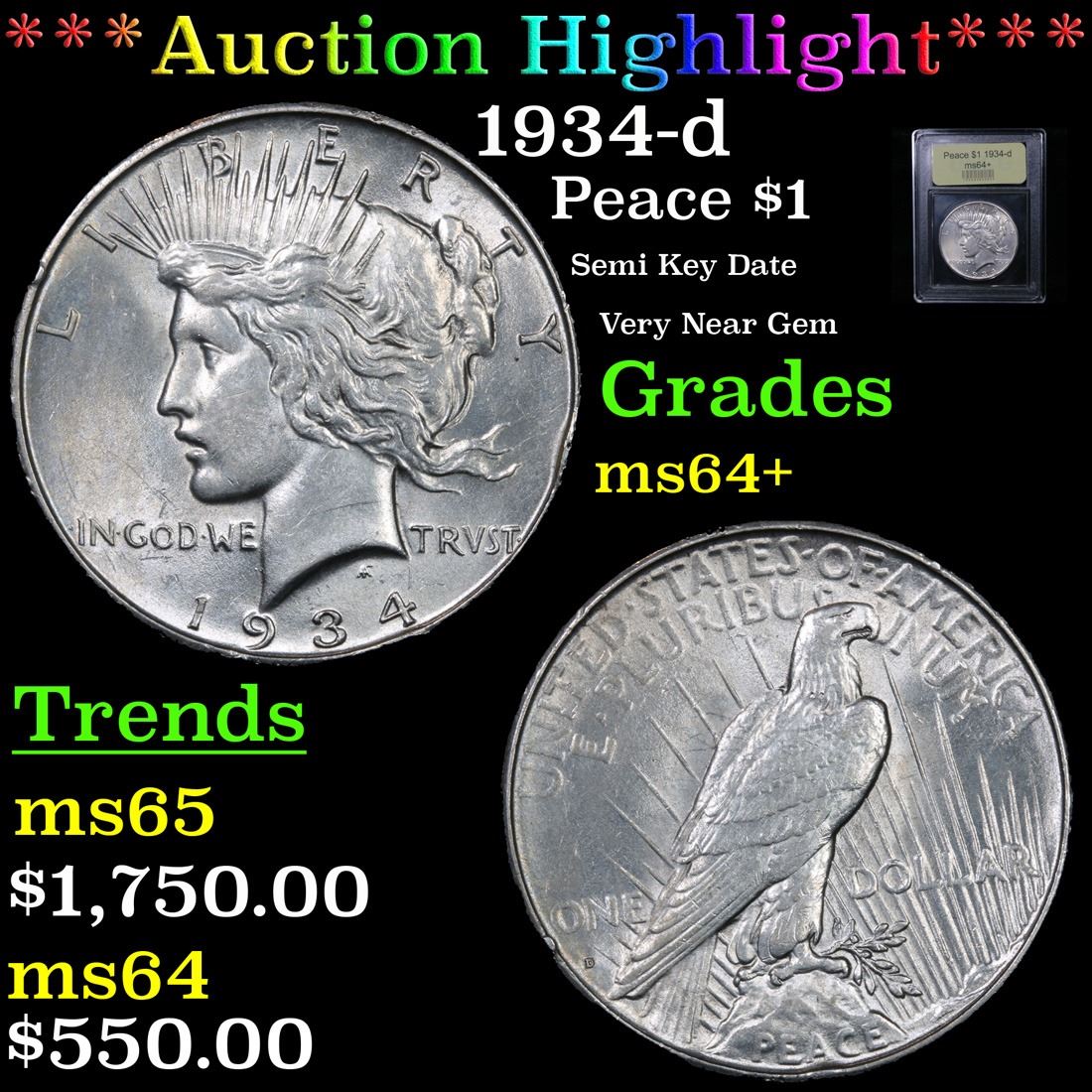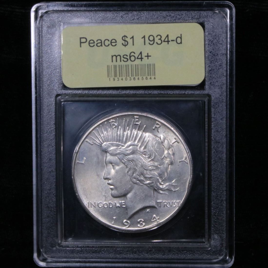 ***Auction Highlight*** 1934-d Semi Key Date Very Near Gem Peace Dollar $1 Graded Choice+ Unc By USCG. A Corey's Pick, Bid to Win Coin