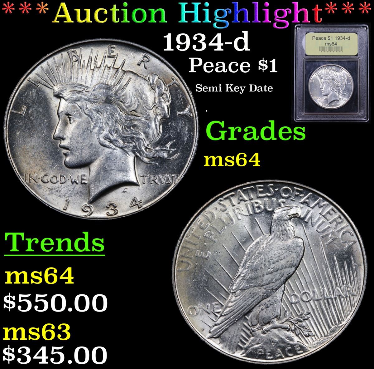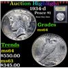 ***Auction Highlight*** 1934-d Peace Dollar $1 Graded Choice Unc By USCG. A Corey's Pick, Bid to Win Coin