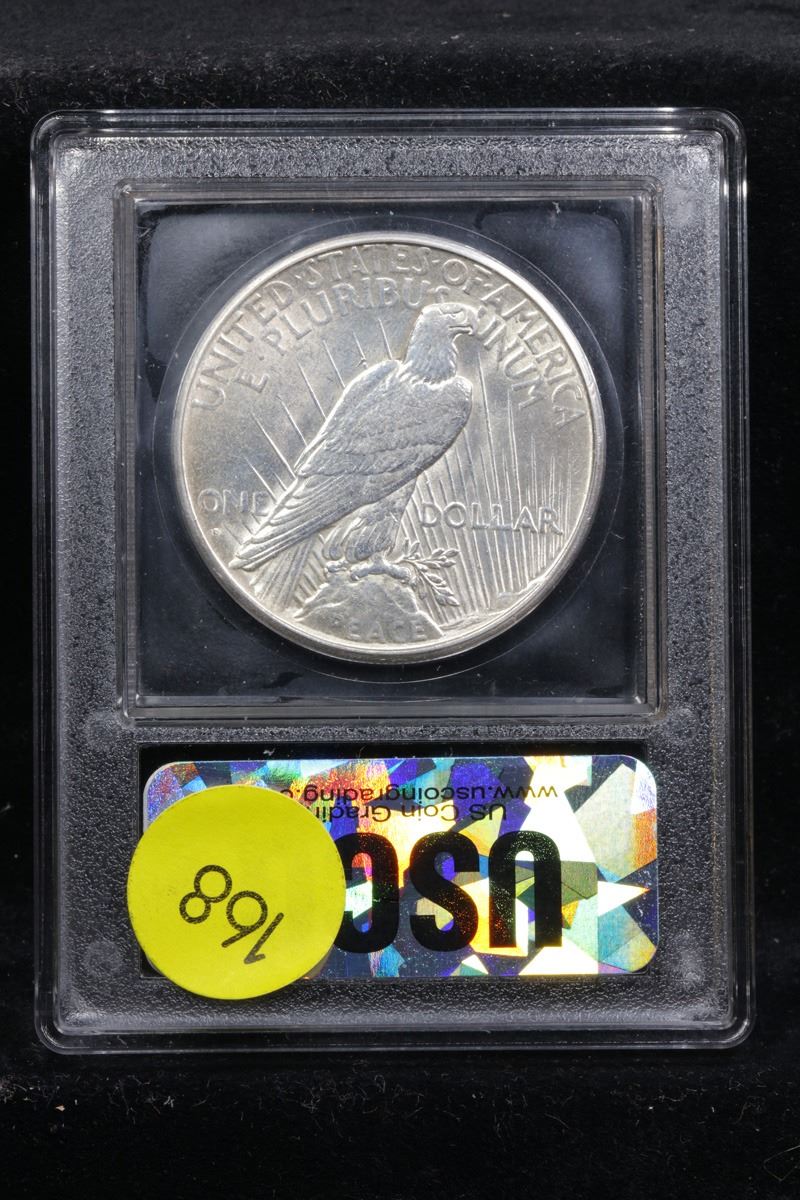 We DO NOT guarantee coin grades on any of our lots. Please study photos carefully and Video during the auction as well as asking questions before bidding. We may be reached at 856-685-9848 prior to the auction M-F 9am-5PM EST.