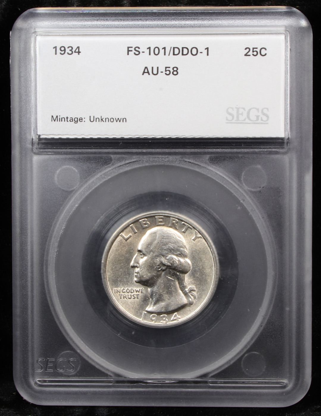 ***Auction Highlight*** 1934-p DDO FS-101 Washington Quarter 25c Graded au58 By SEGS (fc)