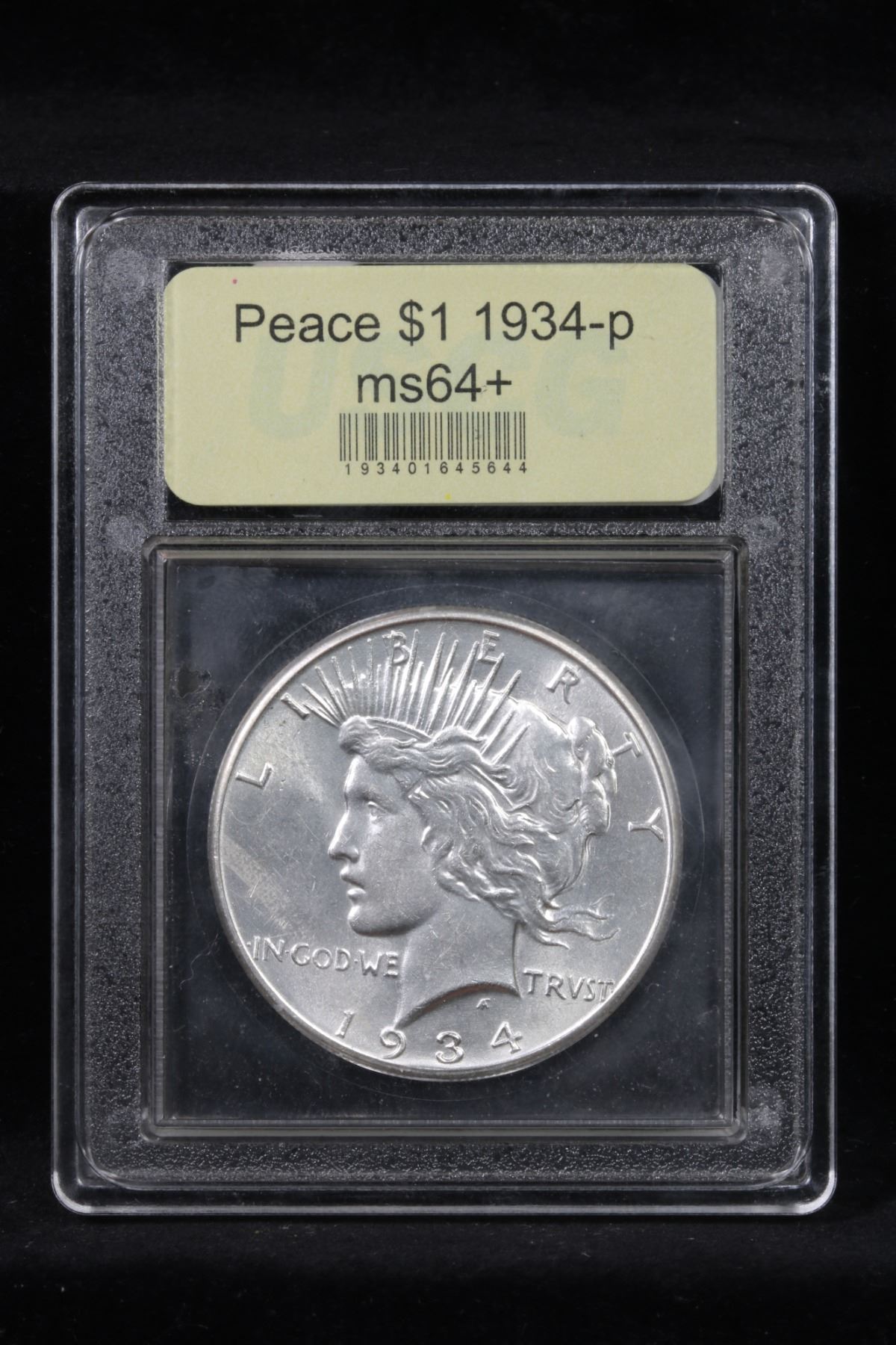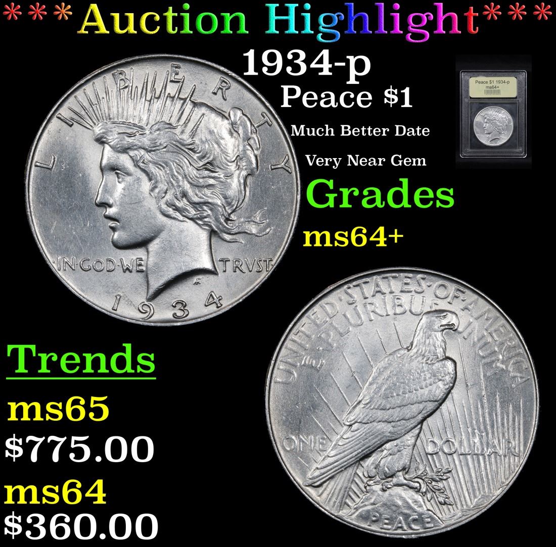 ***Auction Highlight*** 1934-p Much Better Date Very Near Gem Peace Dollar $1 Graded Choice+ Unc By USCG.