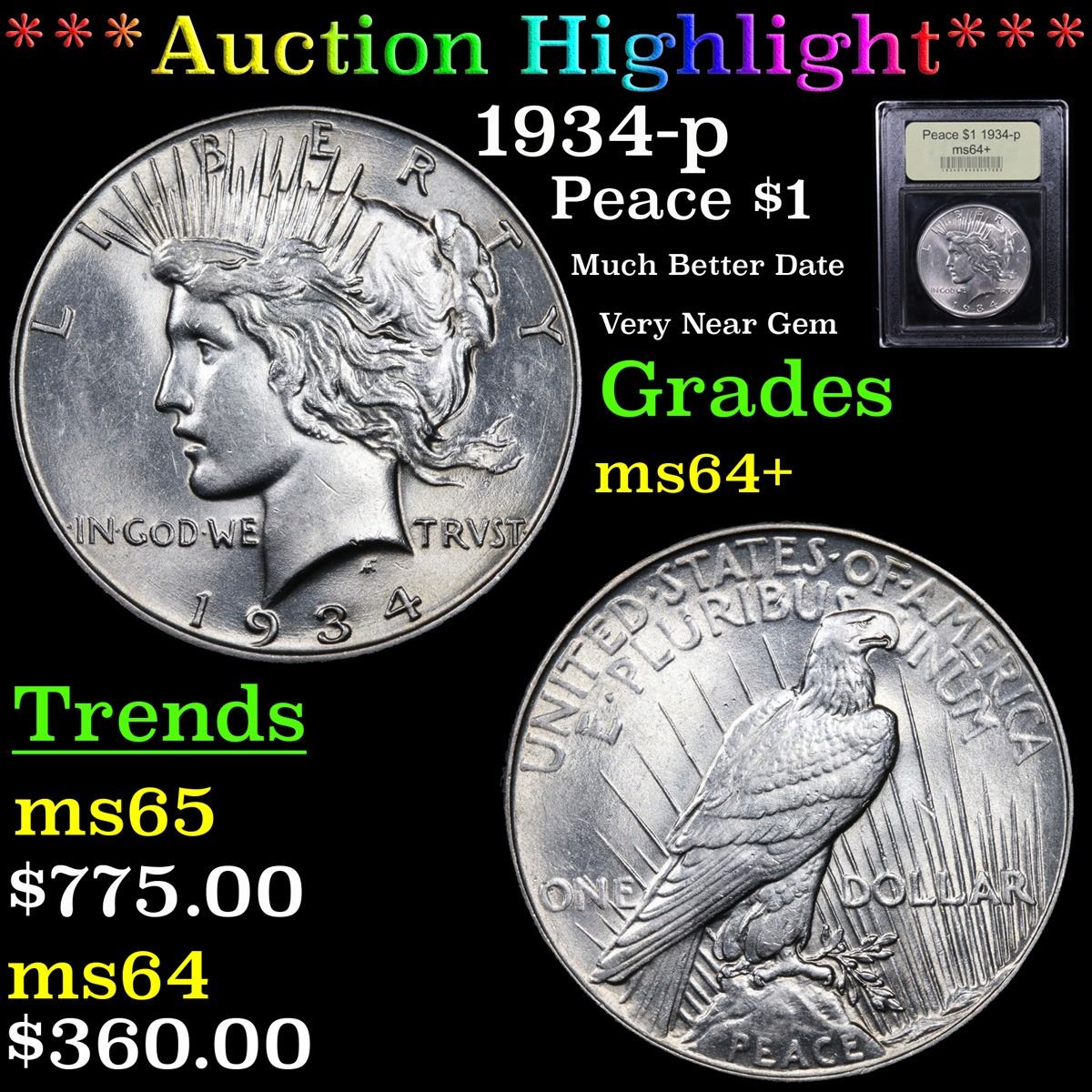 ***Auction Highlight*** 1934-p Much Better Date Very Near Gem Peace Dollar $1 Graded Choice+ Unc By USCG.