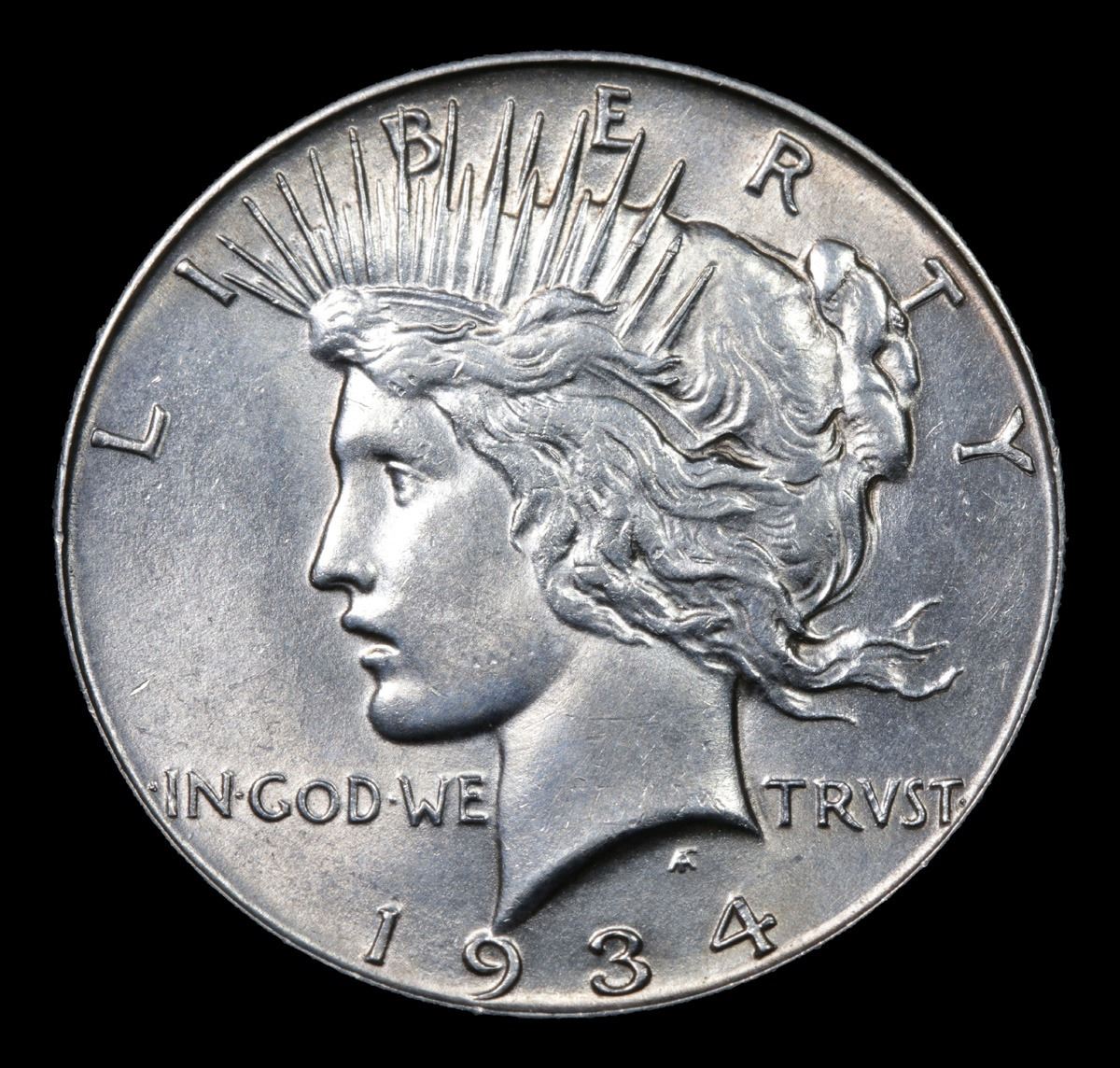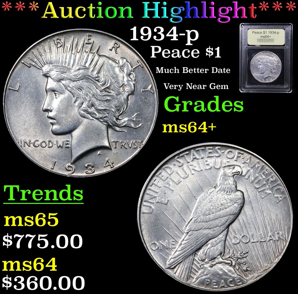 ***Auction Highlight*** 1934-p Much Better Date Very Near Gem Peace Dollar $1 Graded Choice+ Unc By USCG. A Corey's Pick, Bid to Win Coin