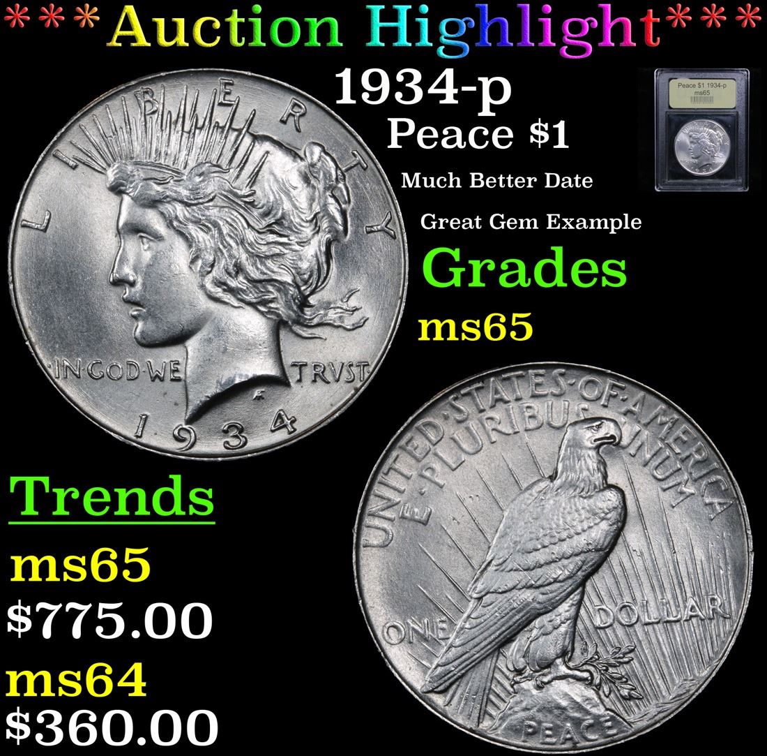 ***Auction Highlight*** 1934-p Much Better Date Great Gem Example Peace Dollar $1 Graded GEM Unc By USCG. A Corey's Pick, Bid to Win, Don't let it get Away Coin