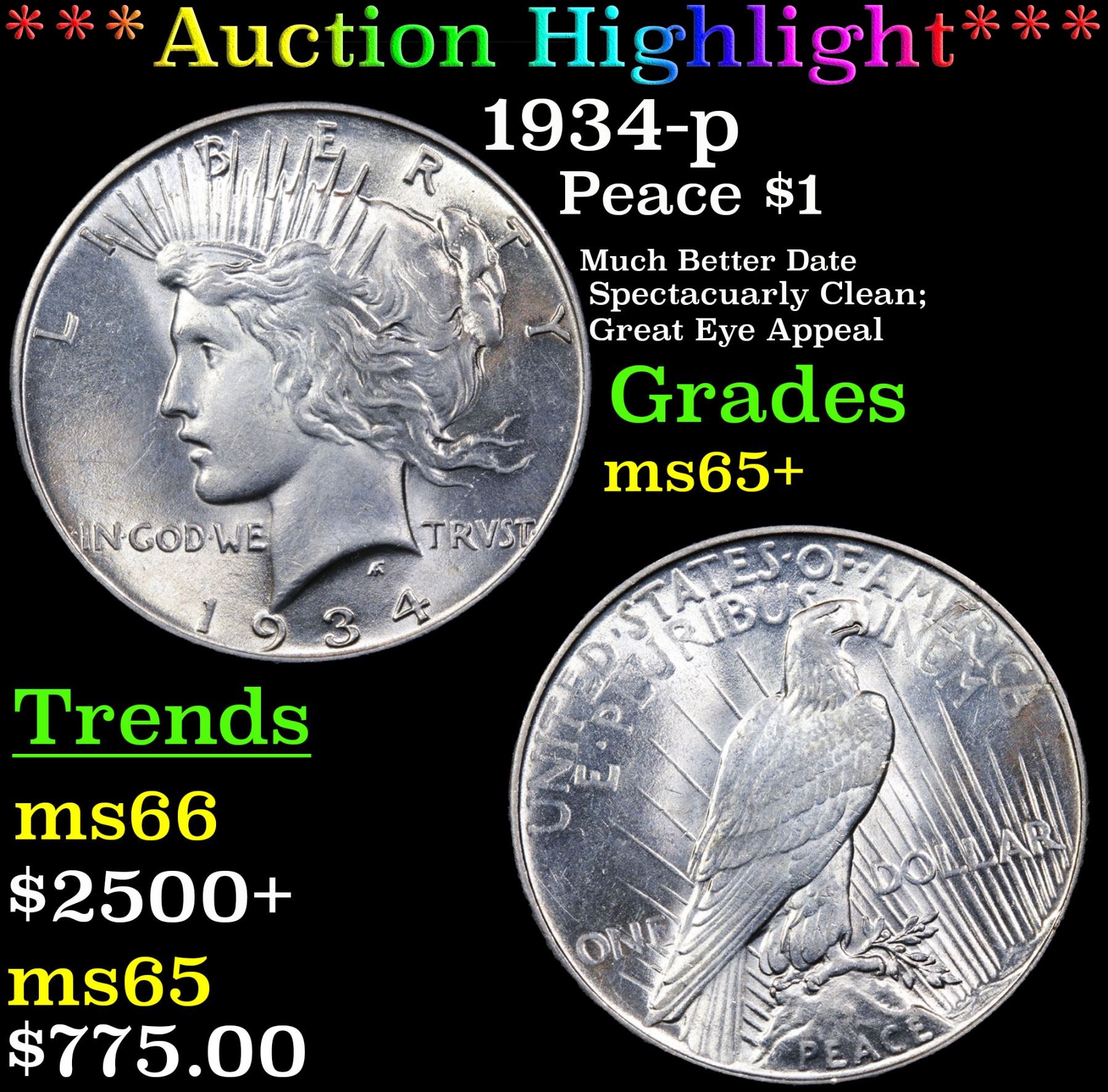 ***Auction Highlight*** 1934-p Peace Dollar $1 Graded GEM+ Unc By USCG. A Corey's Pick, Bid to Win, Don't let it get Away Coin