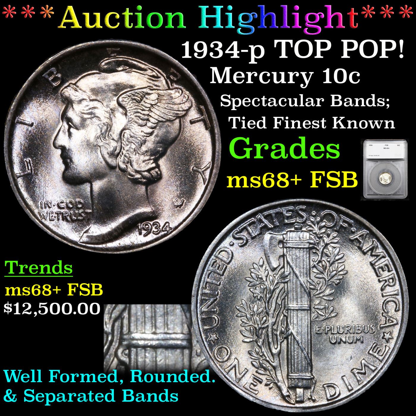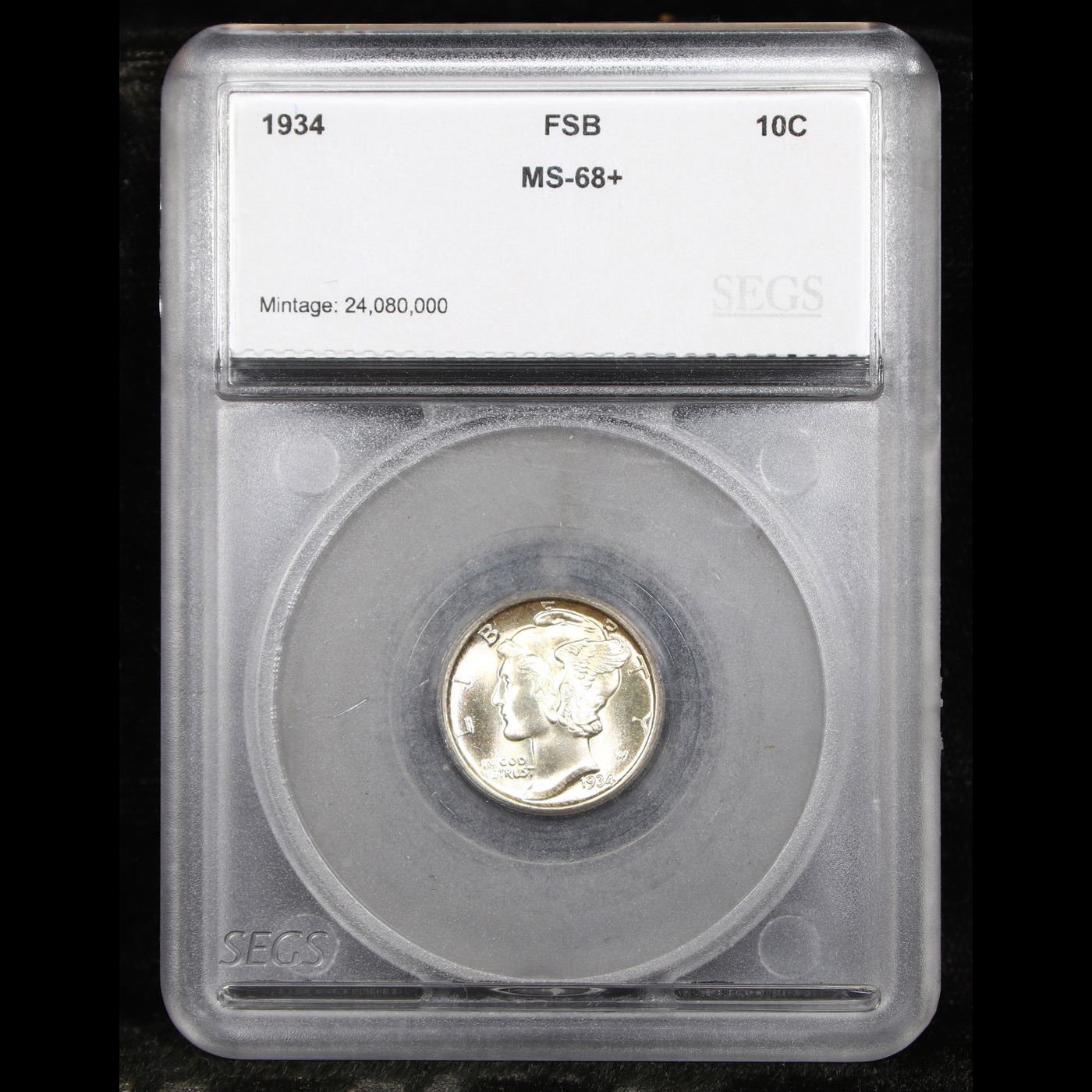 ***Auction Highlight*** 1934-p TOP POP! Mercury Dime 10c Graded ms68+ FSB By SEGS. A Corey's Pick, Bid to Win, Don't let it get Away, you might not find its equal Coin. I give this coin my highest recommendation