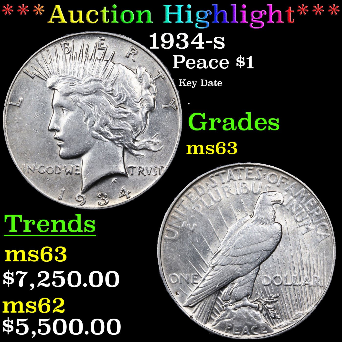 ***Auction Highlight*** 1934-s Peace Dollar $1 Grades Select Unc By USCG. A Corey's Pick, Bid to Win Coin
