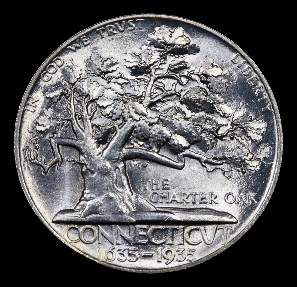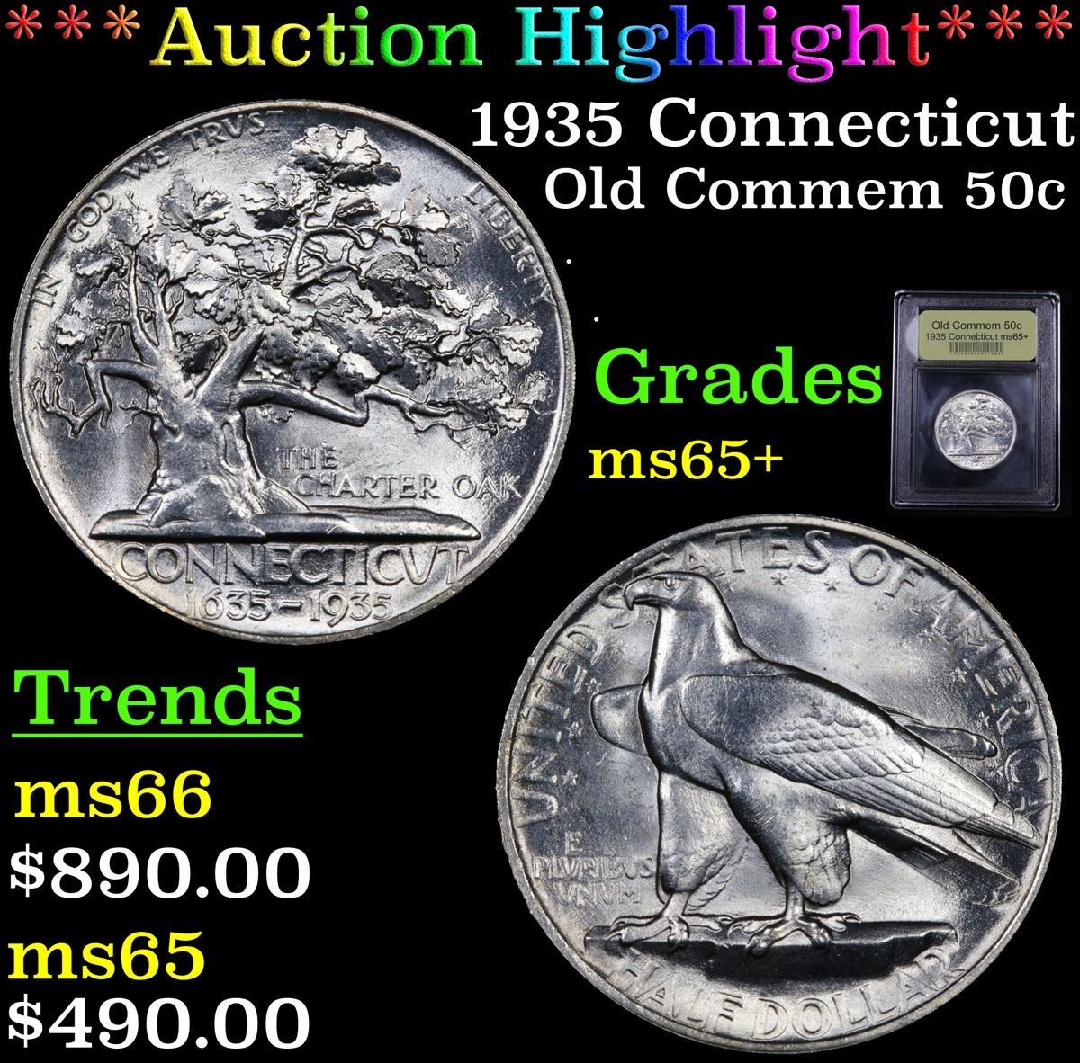 ***Auction Highlight*** 1935 Connecticut Old Commem Half Dollar 50c Graded GEM+ Unc By USCG. The Connecticut Commemorative was very short produced with only 25K produced and they sold out almost immediately, unlike most other commems of the era. When examining a Connecticut Commem for wear Check at the base of the tree and on the upper part of the eagle’s wing. A Corey's Pick, Bid to Win Coin