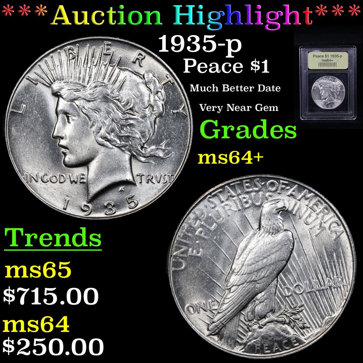 ***Auction Highlight*** 1935-p Much Better Date Very Near Gem Peace Dollar $1 Graded Choice+ Unc By USCG. A Corey's Pick, Bid to Win Coin