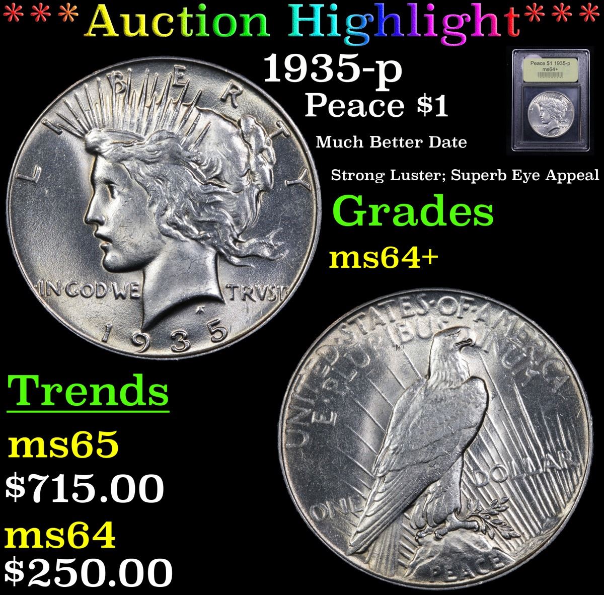 ***Auction Highlight*** 1935-p Peace Dollar $1 Graded Choice+ Unc By USCG. A Corey's Pick, Bid to Win Coin