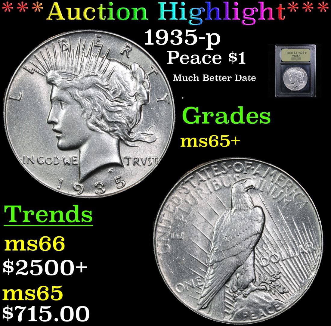 ***Auction Highlight*** 1935-p Much Better Date . Peace Dollar $1 Graded GEM+ Unc By USCG. A Corey's Pick, Bid to Win, Don't let it get Away Coin