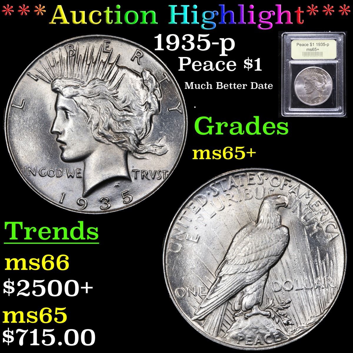 ***Auction Highlight*** 1935-p Much Better Date . Peace Dollar $1 Graded GEM+ Unc By USCG. A Corey's Pick, Bid to Win, Don't let it get Away, you might not find its equal Coin