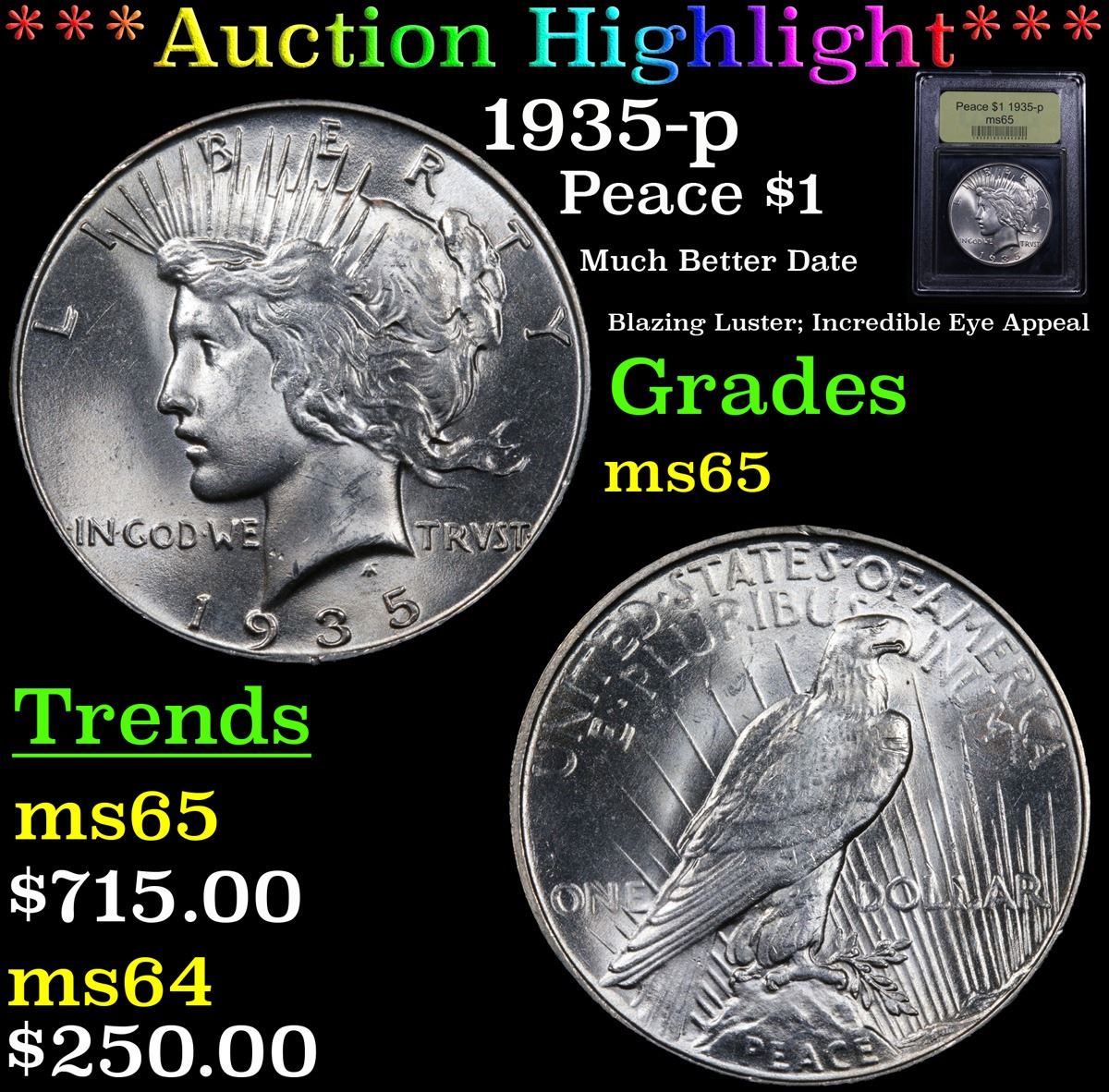 ***Auction Highlight*** 1935-p Peace Dollar $1 Graded GEM Unc By USCG. A Corey's Pick, Bid to Win, Don't let it get Away Coin