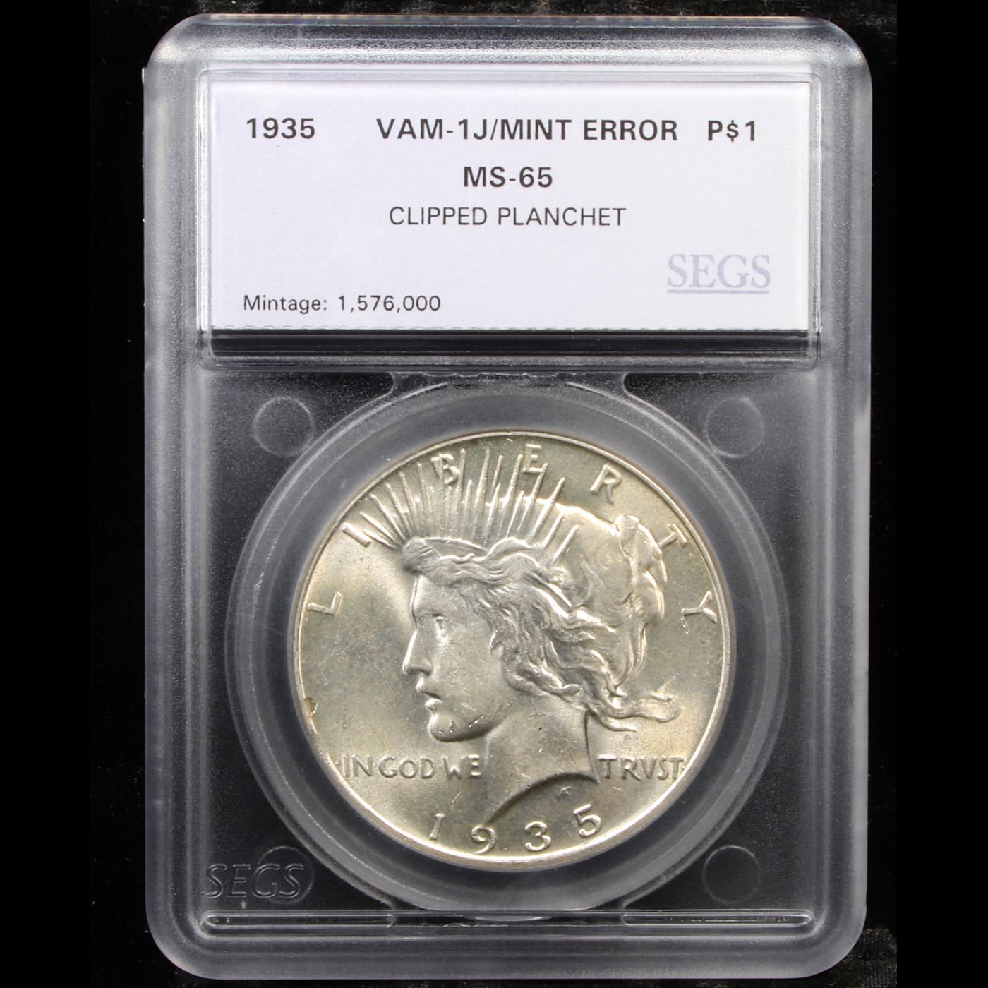 ***Auction Highlight*** 1935-p Vam 1J R5 Double Mint Error Peace Dollar $1 Graded ms65 By SEGS (fc)