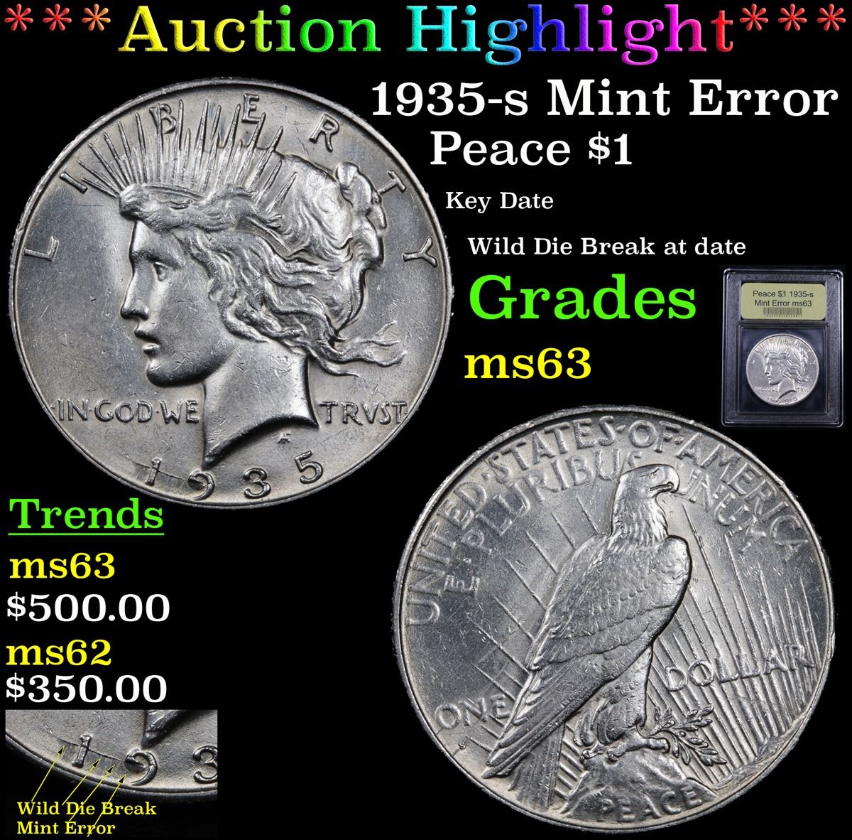 ***Auction Highlight*** 1935-s Mint Error Peace Dollar $1 Graded Select Unc By USCG. A Corey's Pick, Bid to Win Coin
