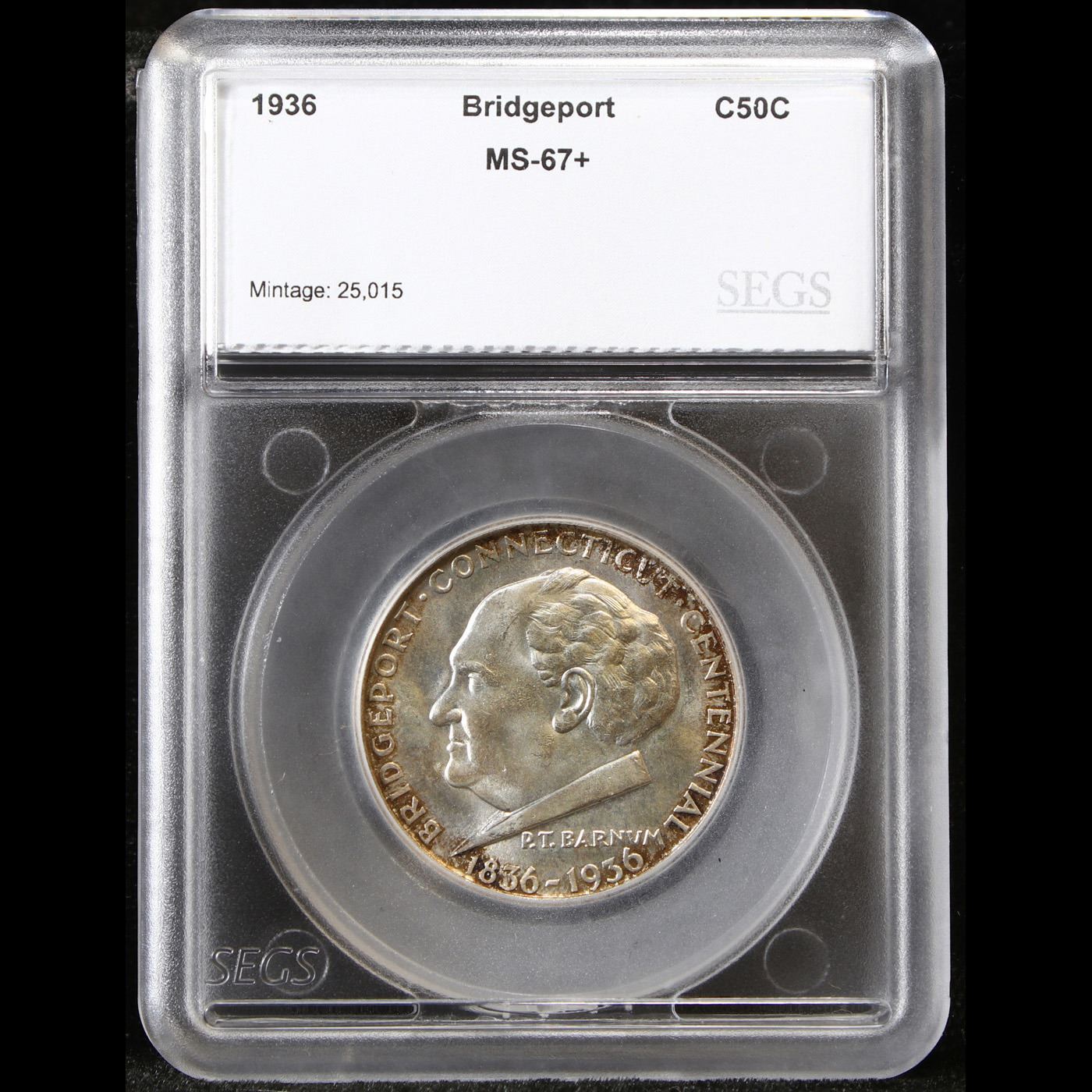 ***Auction Highlight*** 1936 Bridgeport TOP POP! Old Commem Half Dollar 50c Graded ms67+ By SEGS (fc