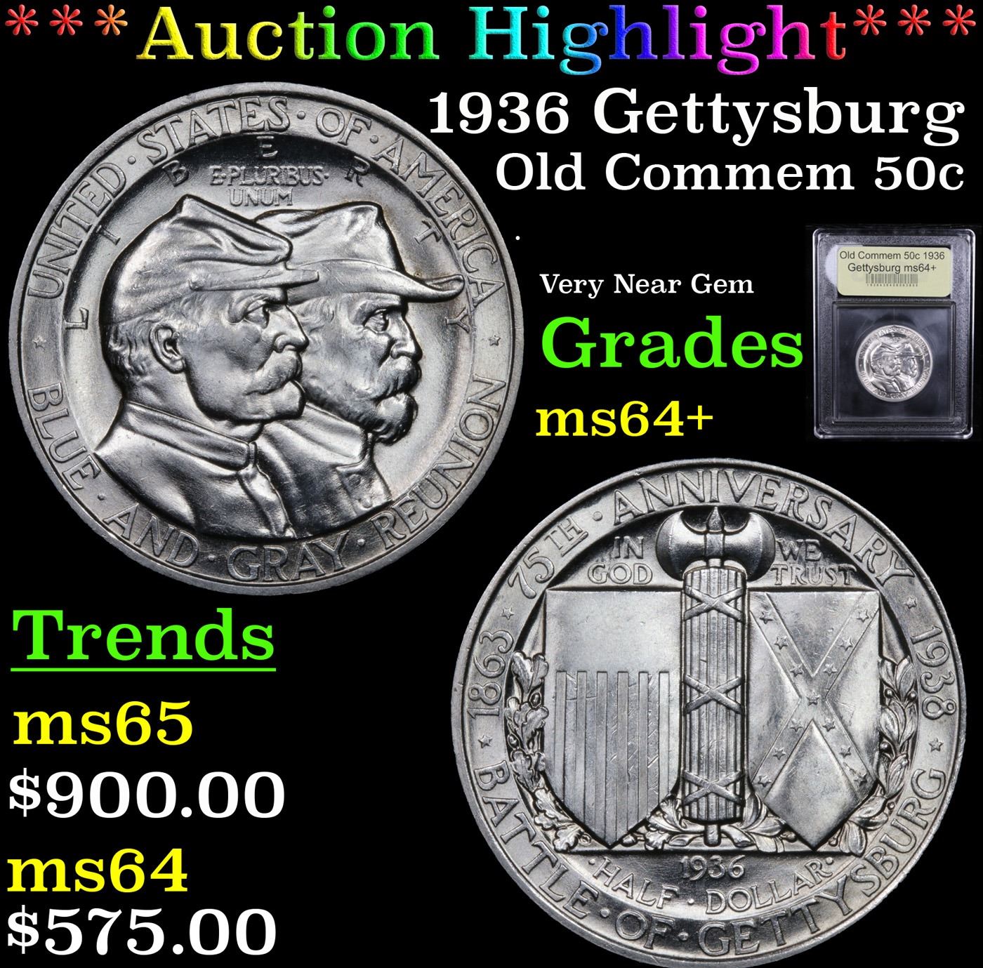 ***Auction Highlight*** 1936 Gettysburg Old Commem Half Dollar 50c Graded Choice+ Unc By USCG. A Great Commemorative with a storied history minted for the 75th Anniversary of the Battle of Gettysburg.
