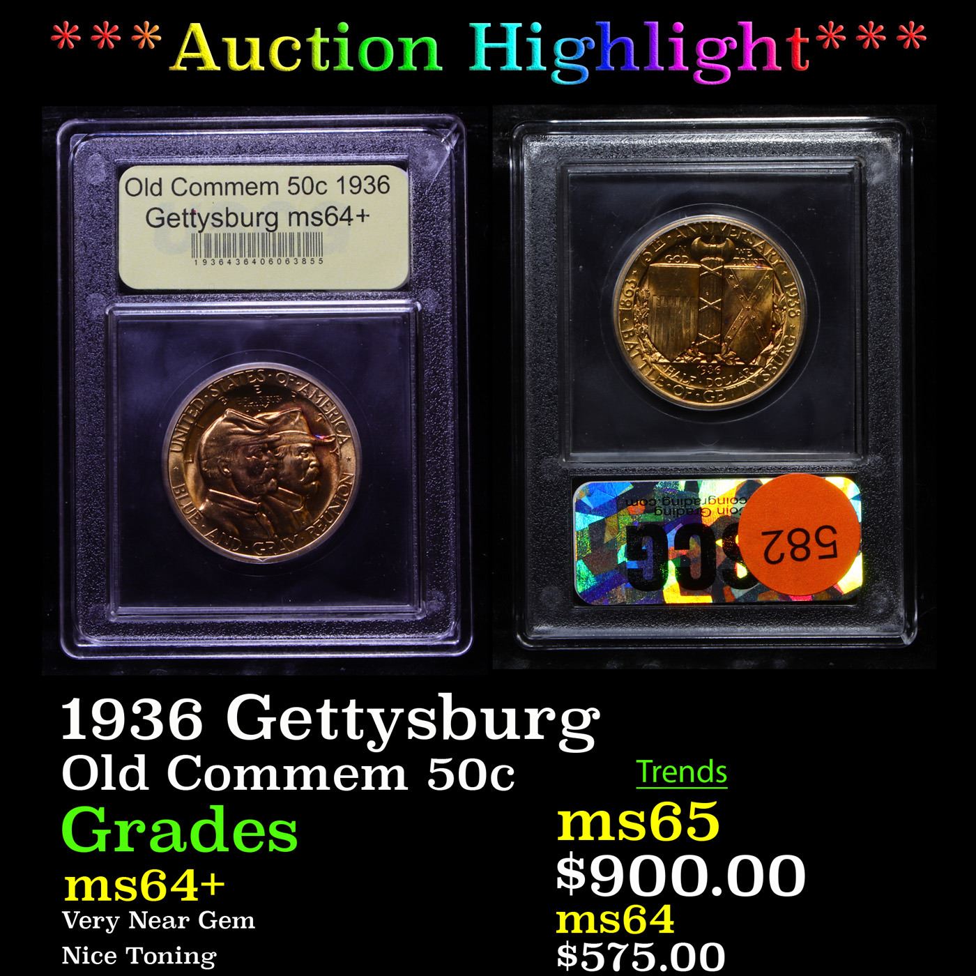 ***Auction Highlight*** 1936 Gettysburg Old Commem Half Dollar 50c Graded Choice+ Unc By USCG. A Great Commemorative with a storied history minted for the 75th Anniversary of the Battle of Gettysburg.