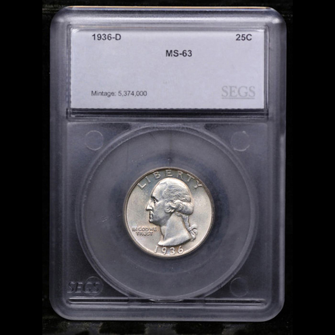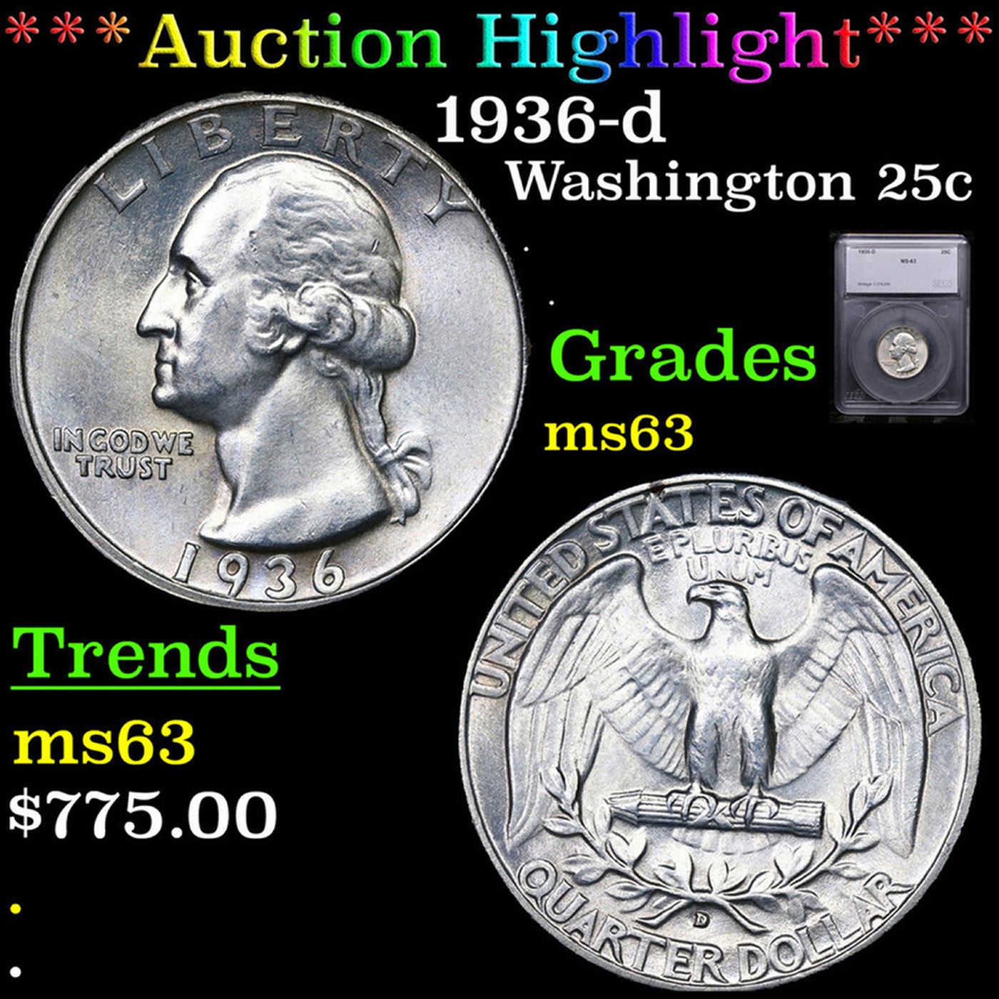 ***Auction Highlight*** 1936-d Washington Quarter 25c Graded ms63 By SEGS.
