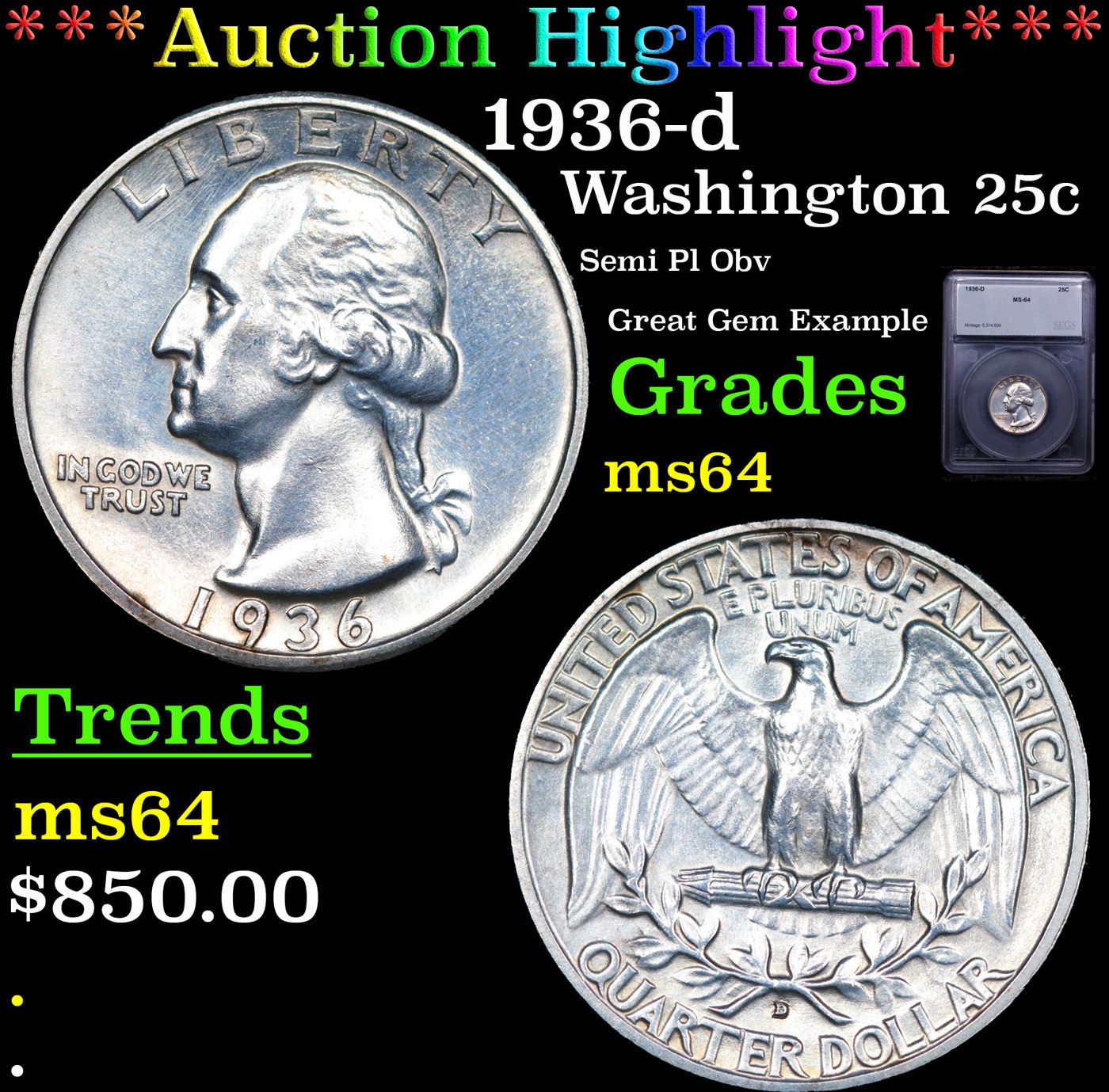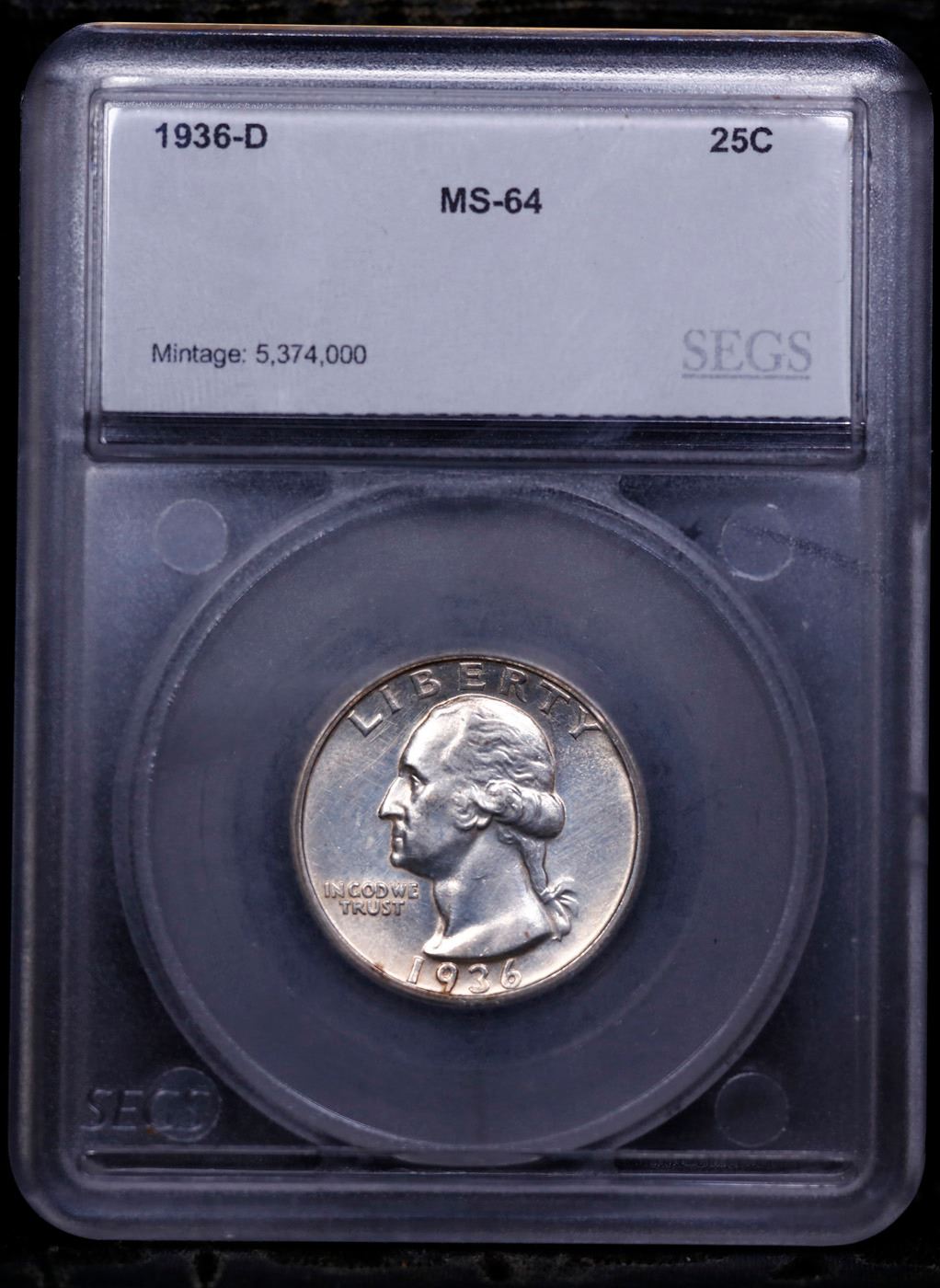 ***Auction Highlight*** 1936-d Washington Quarter 25c Graded ms65 By SEGS. 0