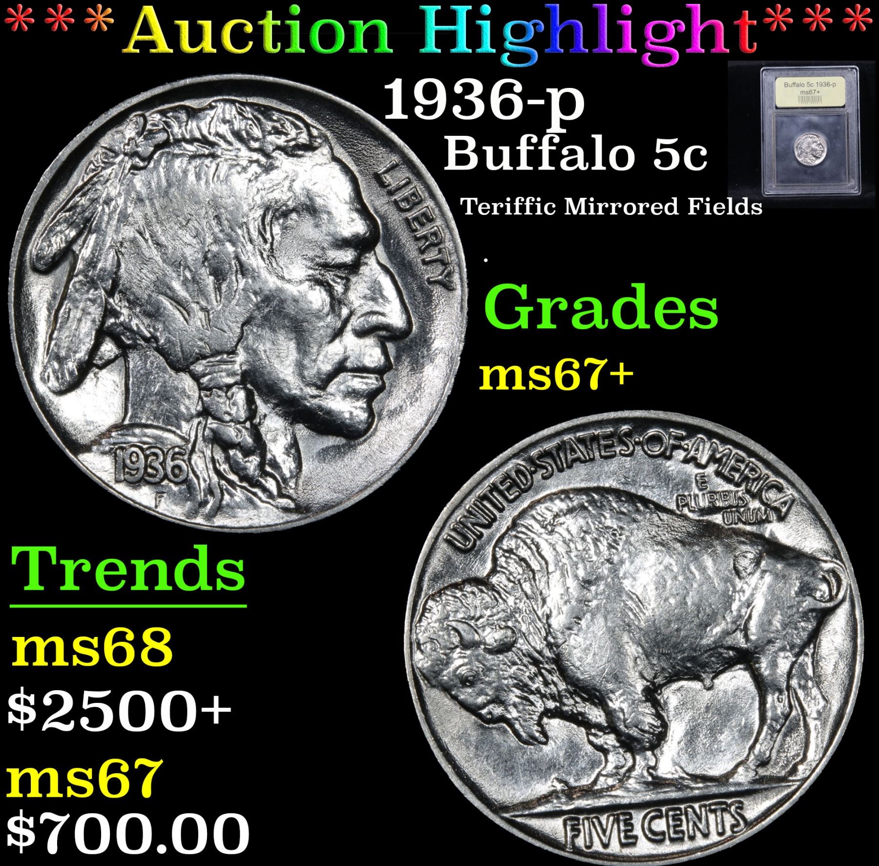 ***Auction Highlight*** 1936-p Teriffic Mirrored Fields . Buffalo Nickel 5c Graded Gem++ Unc By USCG.         A Corey's Pick, Bid to Win, Don't let it get Away Coin