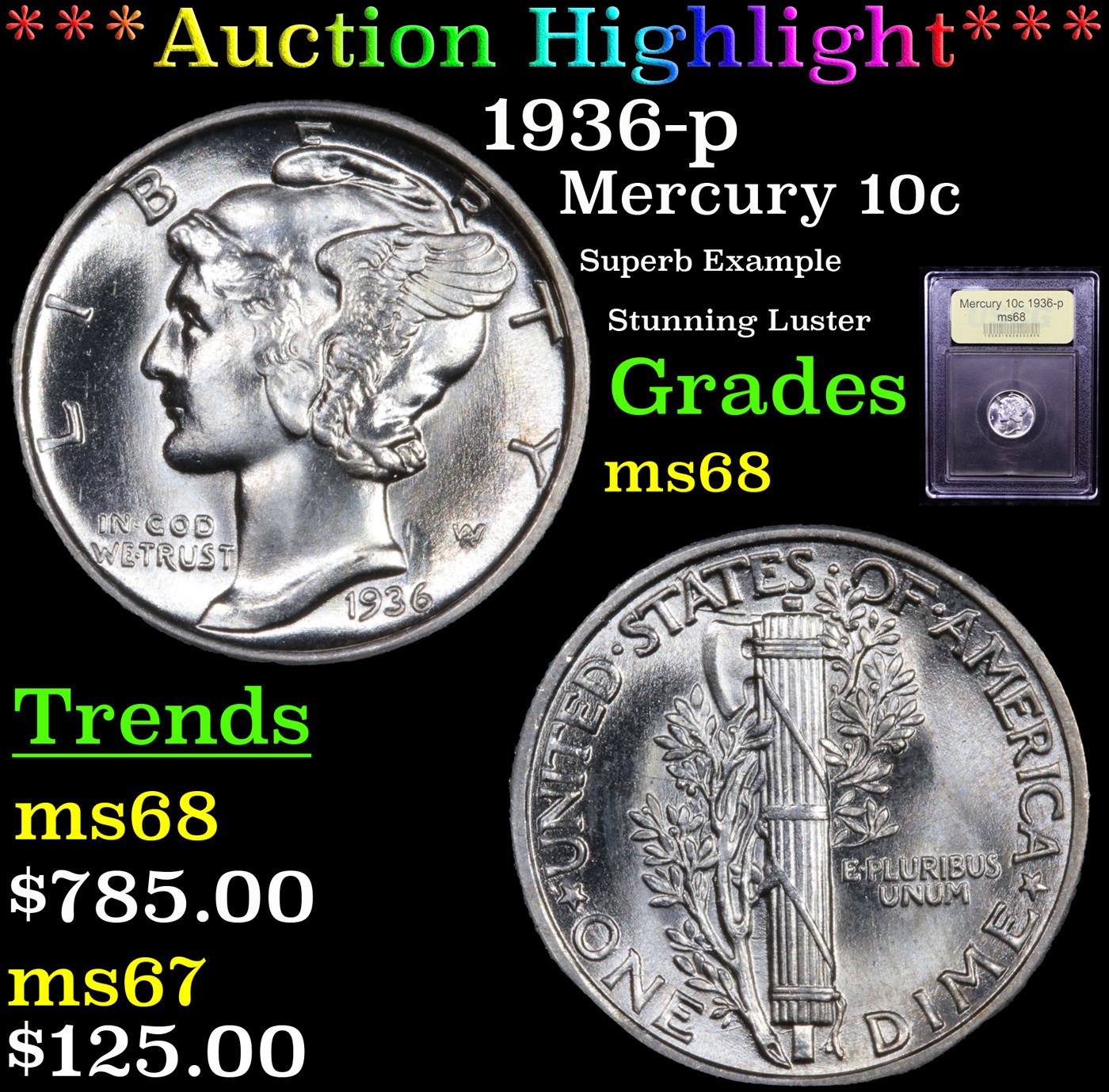 ***Auction Highlight*** 1936-p Mercury Dime 10c Graded GEM+++ Unc By USCG. A Corey's Pick, Bid to Win, Don't let it get Away Coin