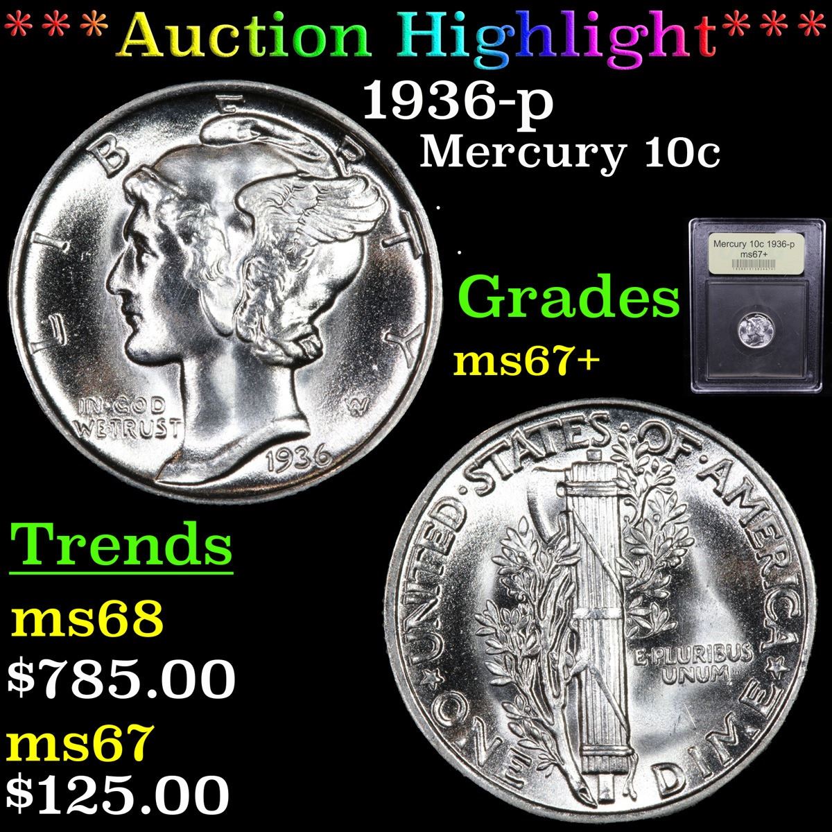 ***Auction Highlight*** 1936-p . . Mercury Dime 10c Graded Gem++ Unc By USCG. A Corey's Pick, Bid to Win, Don't let it get Away, you might not find its equal Coin