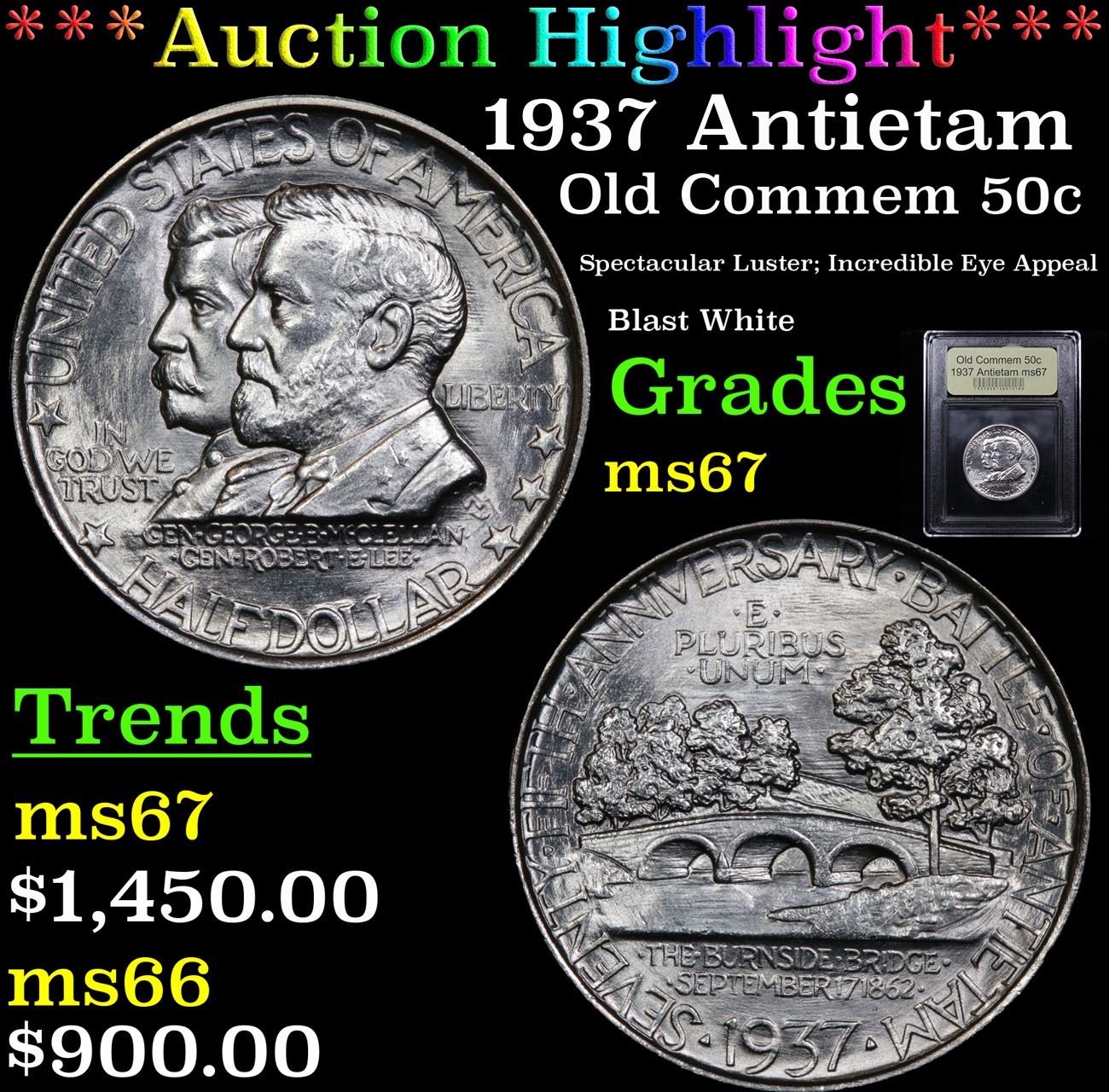 ***Auction Highlight*** 1937 Antietam Spectacular Luster; Incredible Eye Appeal Blast White Old Commem Half Dollar 50c Graded GEM++ Unc By USCG. A Corey's Pick, Bid to Win, Don't let it get Away, you might not find its equal Coin. I give this coin my highest recommendation