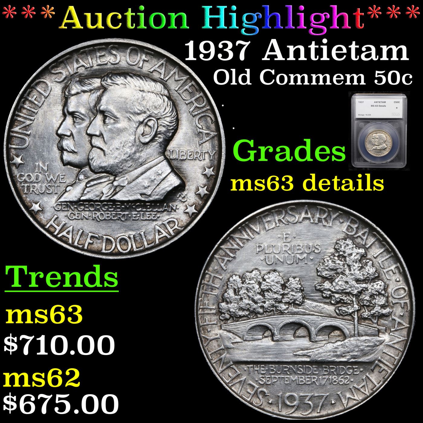 ***Auction Highlight*** 1937 Antietam Old Commem Half Dollar 50c Graded ms63 details By SEGS.