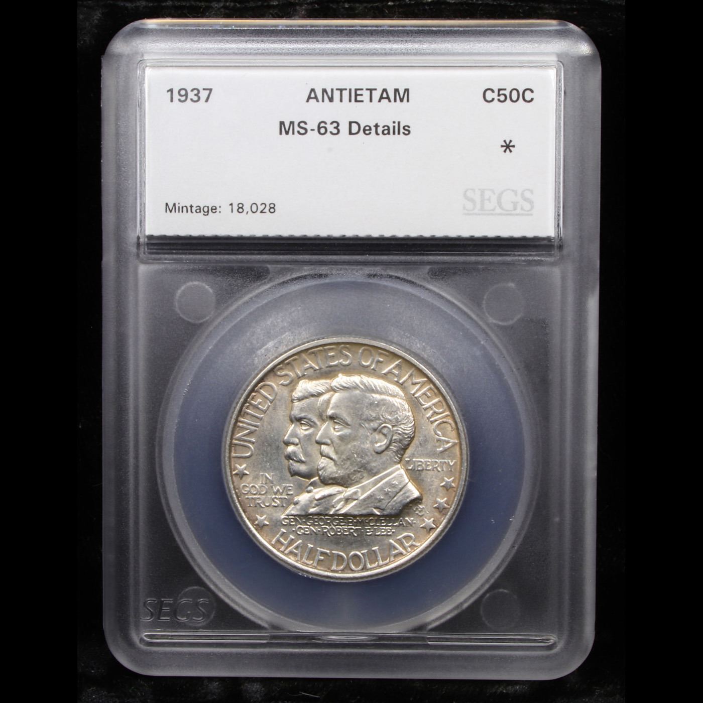 ***Auction Highlight*** 1937 Antietam Old Commem Half Dollar 50c Graded ms63 details By SEGS (fc)
