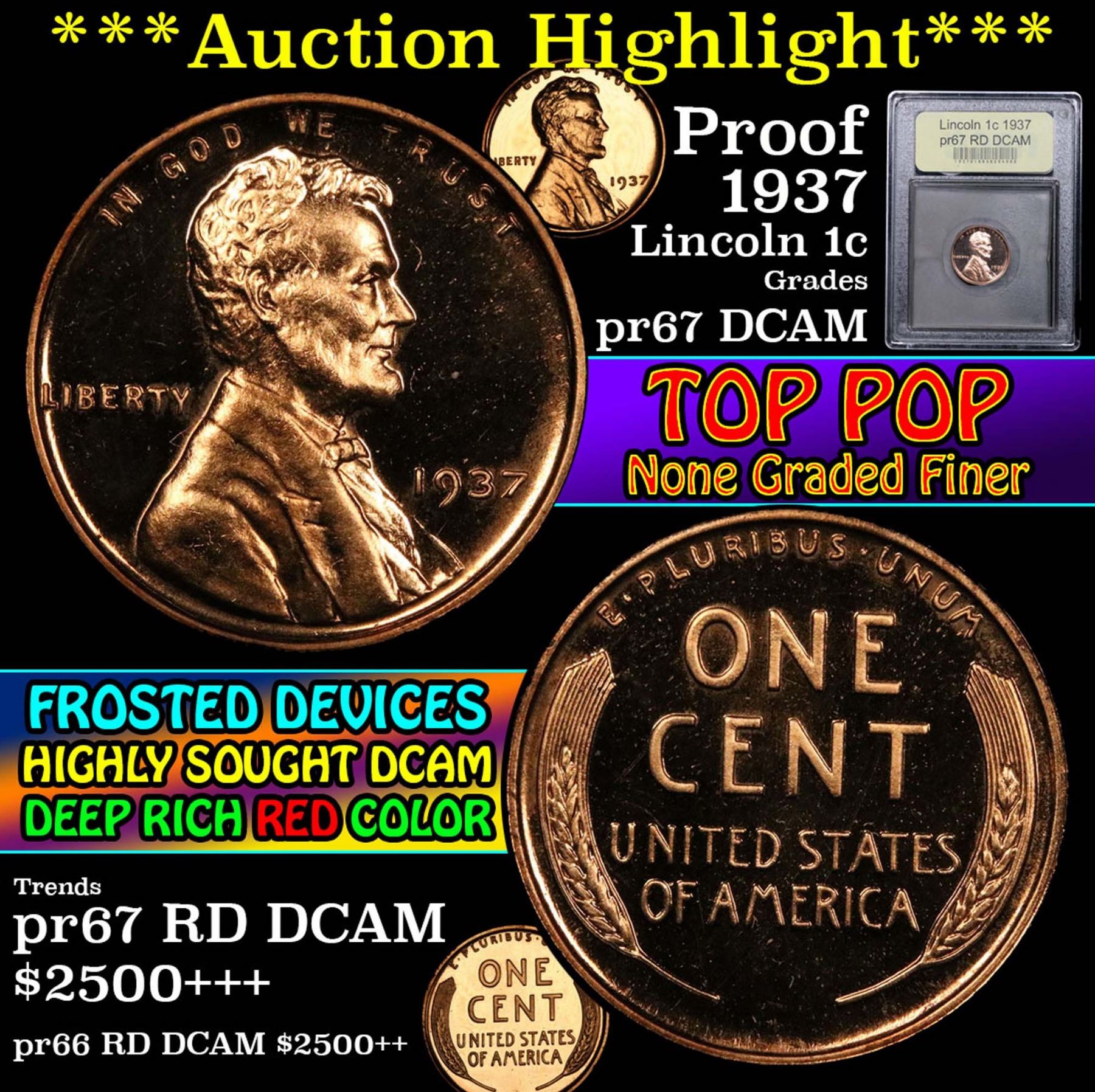 ***Auction Highlight*** 1937 Lincoln Cent 1c Graded Gem++ Proof Red Deep cameo By USCG. Spectacular cameo A Corey's Pick, Bid to Win, Don't let it get Away, you might not find its equal Coin. I give this coin my highest reccomendation