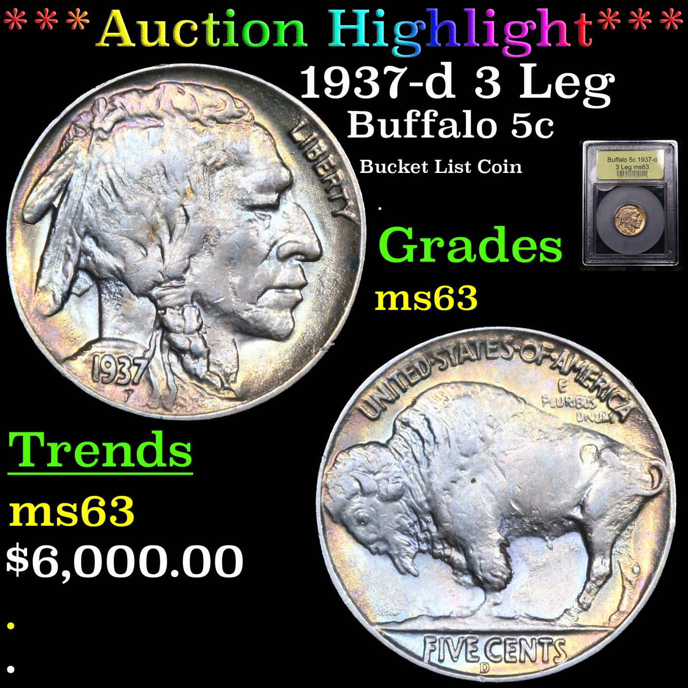 ***Auction Highlight*** 1937-d 3 Leg Buffalo Nickel 5c Graded Select Unc By USCG. The most sought after and heralded Buffalo, the 3 legged 1937-d. A Corey's Pick, Bid to Win, Don't let it get Away, you might not find its equal Coin. I give this coin my highest recommendation
