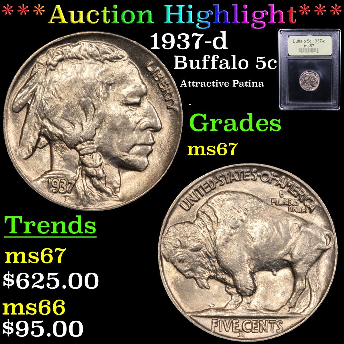 ***Auction Highlight*** 1937-d Buffalo Nickel 5c Graded GEM++ Unc By USCG. 0