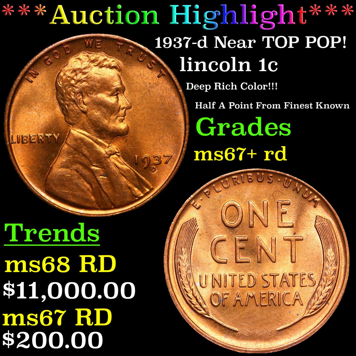 ***Auction Highlight*** 1937-d Near TOP POP! Lincoln Cent 1c Graded ms67+ rd BY SEGS. A Corey's Pick, Bid to Win, Don't let it get Away, you might not find its equal Coin
