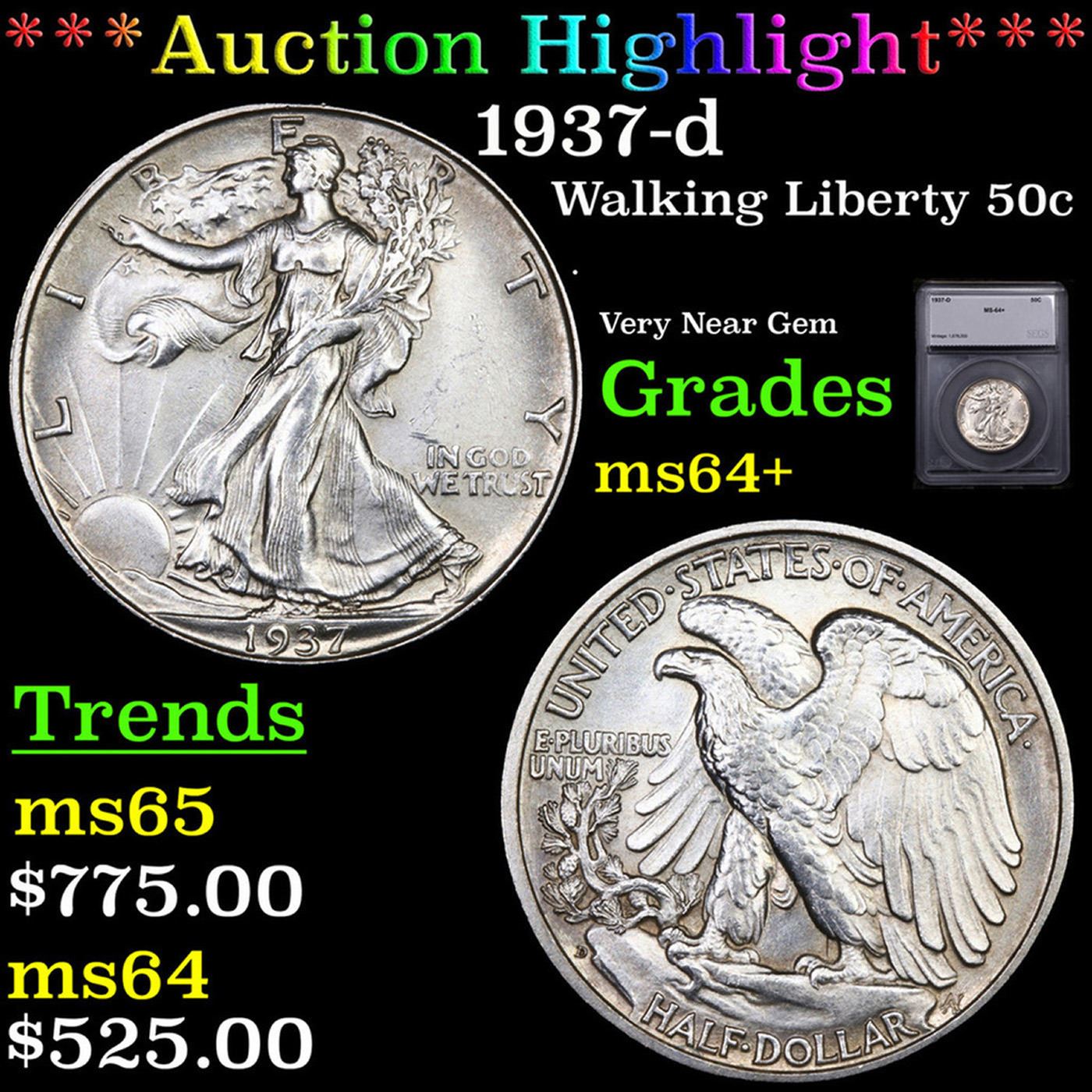 ***Auction Highlight*** 1937-d Walking Liberty Half Dollar 50c Graded ms64+ BY SEGS.