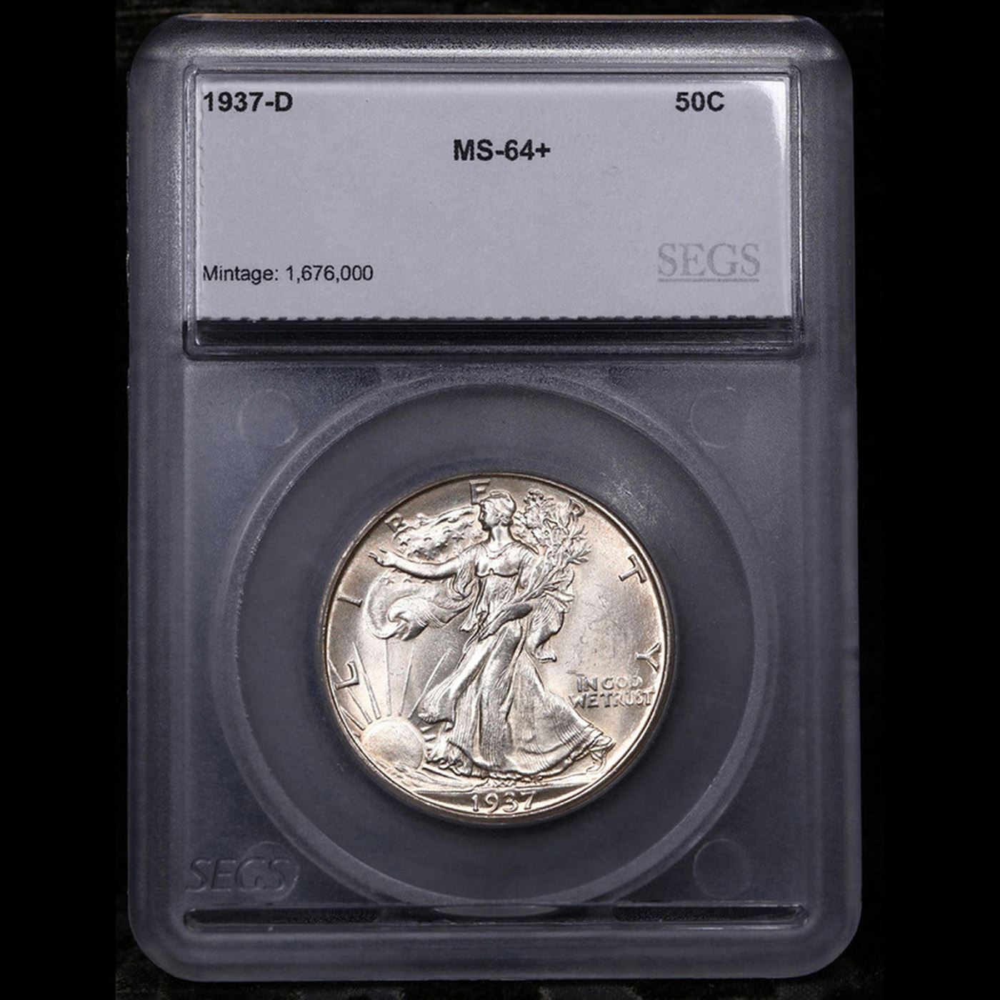 ***Auction Highlight*** 1937-d Walking Liberty Half Dollar 50c Graded ms64+ BY SEGS (fc)