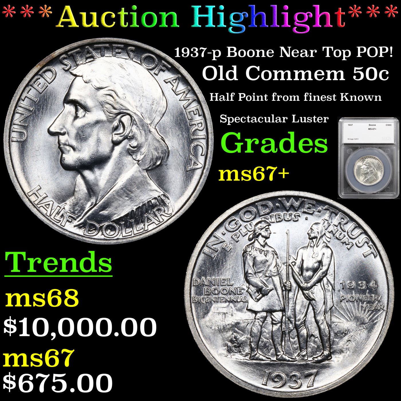 ***Auction Highlight*** 1937-p Boone Old Commem Half Dollar Near Top POP! 50c Graded ms67+ By SEGS (