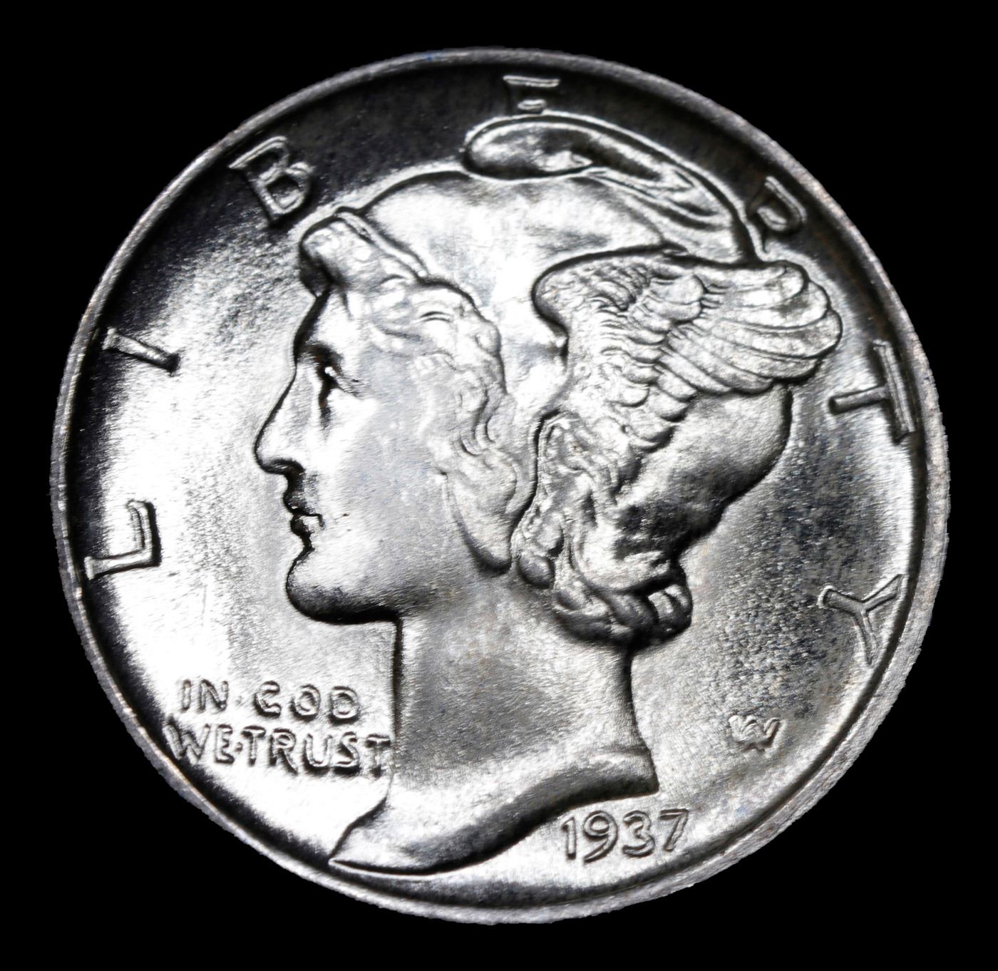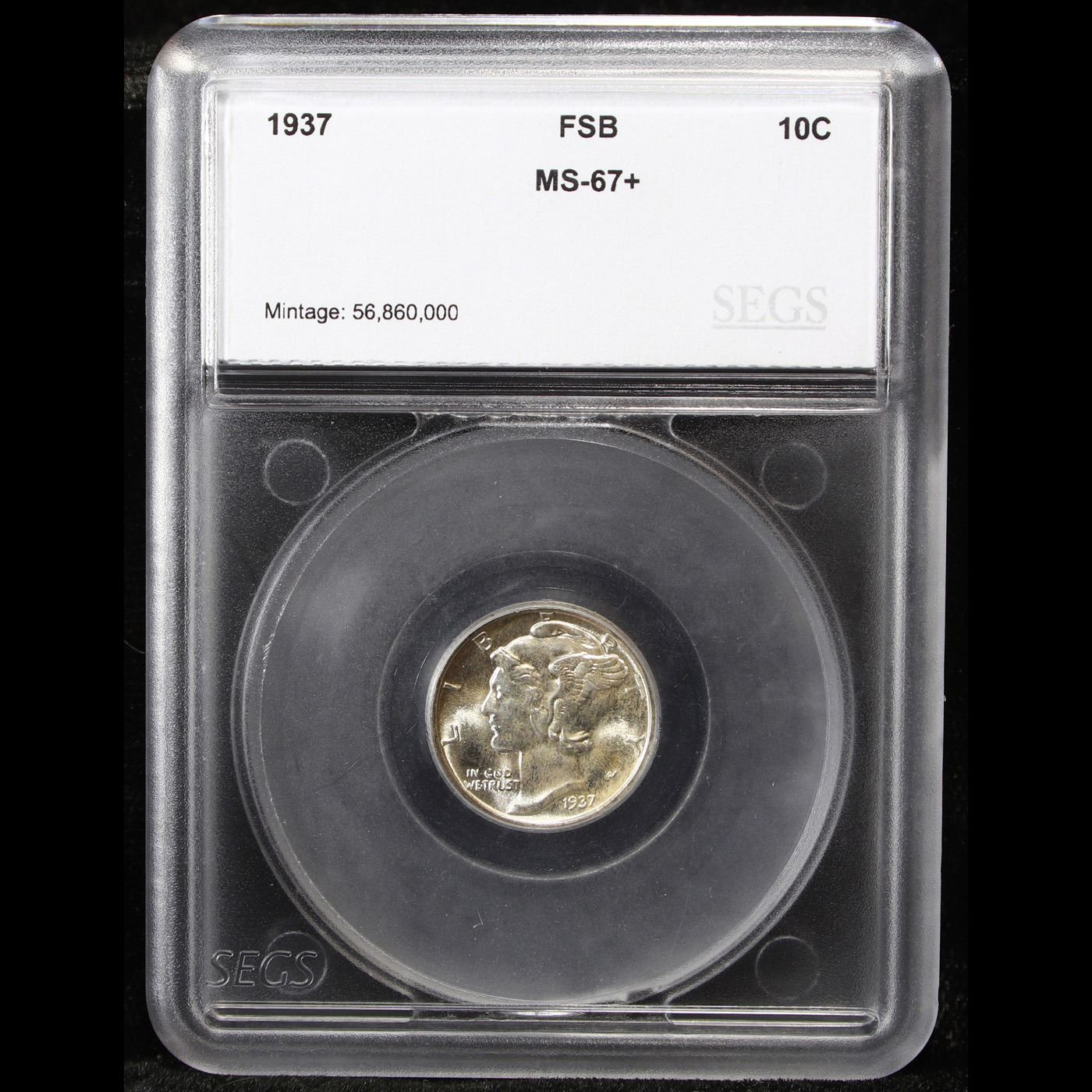 ***Auction Highlight*** 1937-p Mercury Dime 10c Graded ms67+ FSB By SEGS.