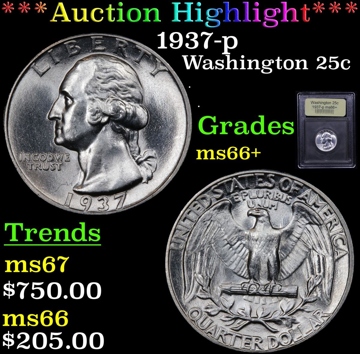 ***Auction Highlight*** 1937-p Washington Quarter 25c Graded GEM++ Unc By USCG. A Corey's Pick, Bid to Win Coin