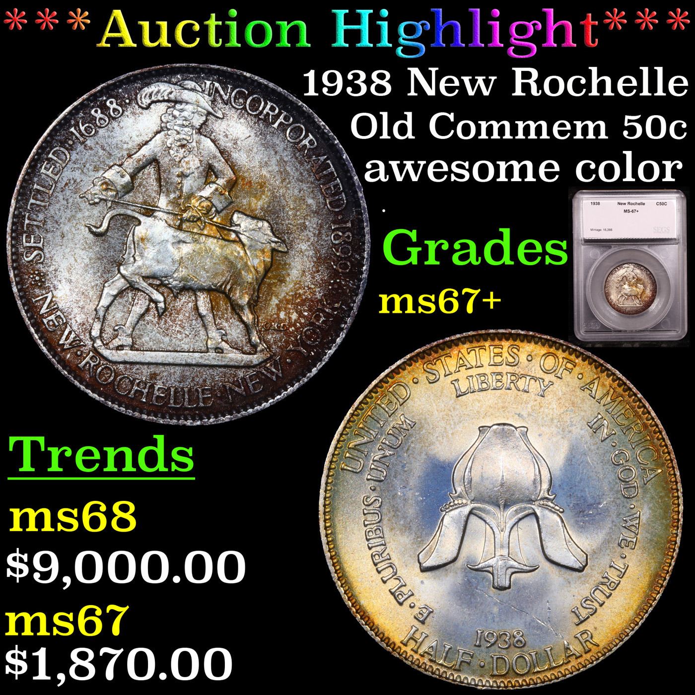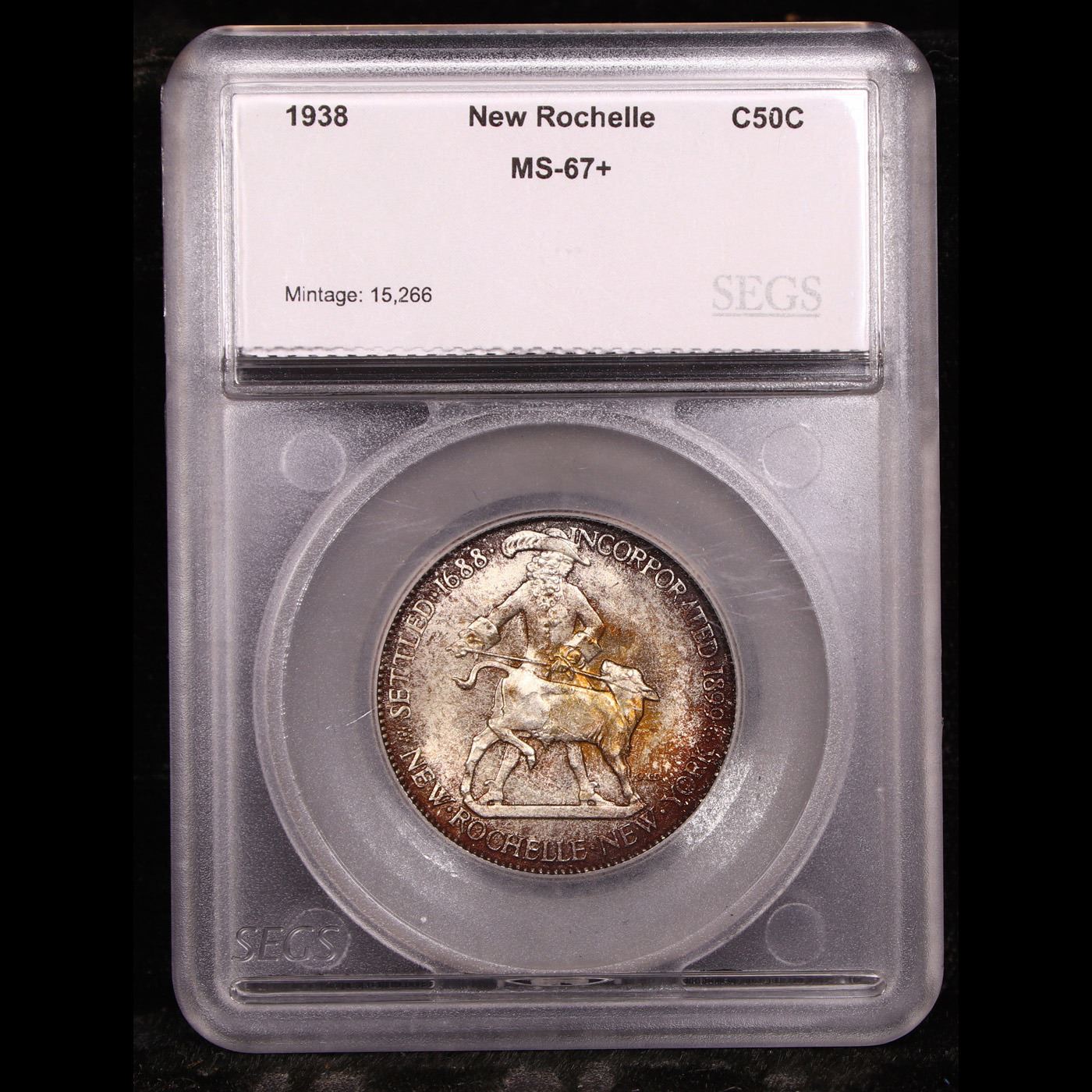 ***Auction Highlight*** 1938 New Rochelle Old Commem Half Dollar 50c Graded ms67+ By SEGS (fc)