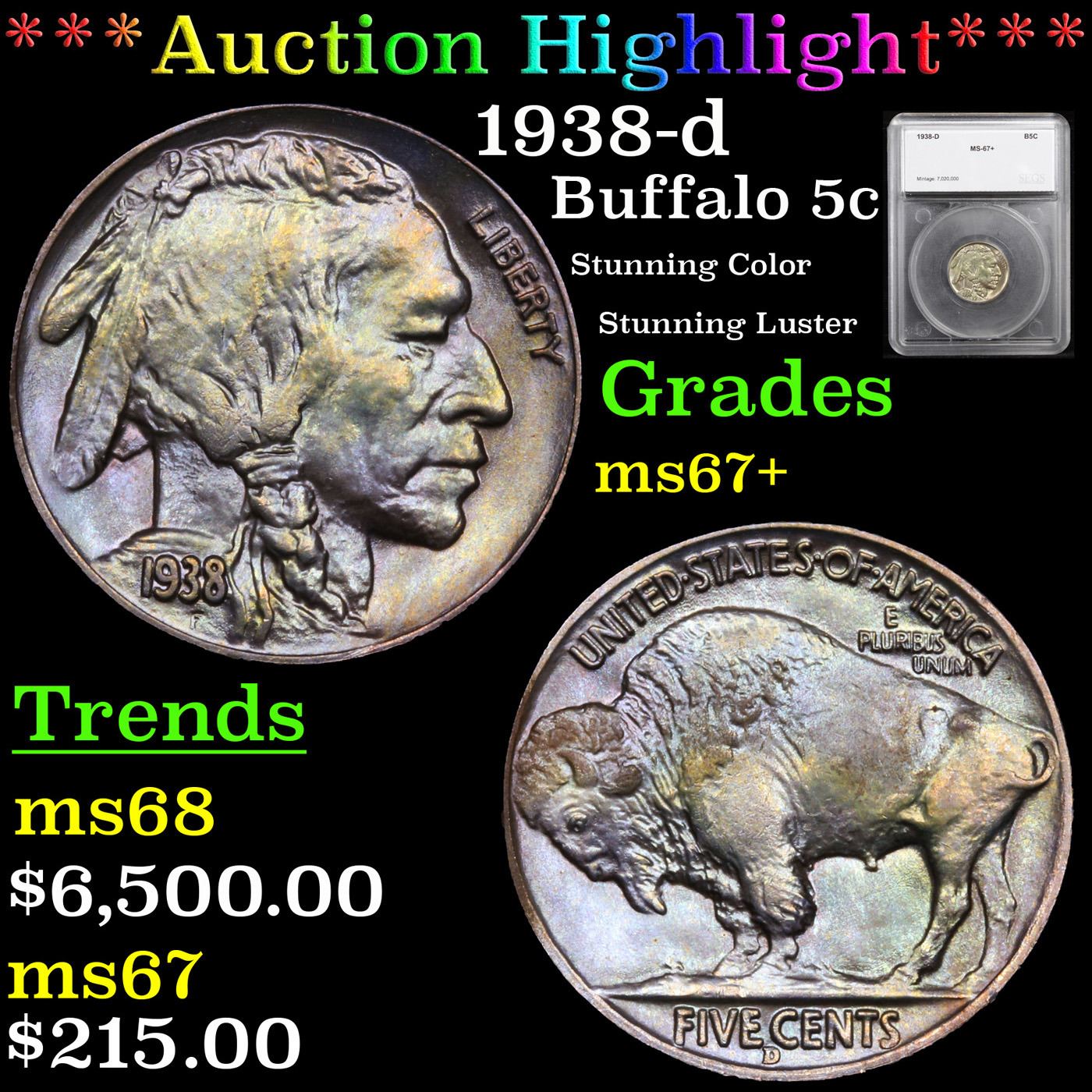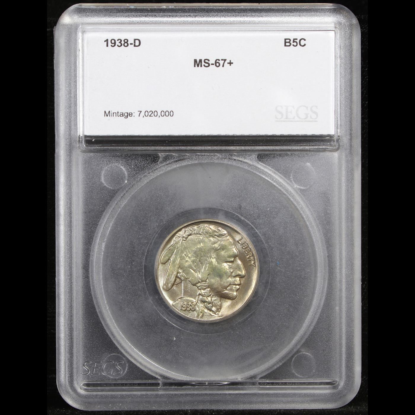 ***Auction Highlight*** 1938-d Buffalo Nickel 5c Graded ms67+ By SEGS.
