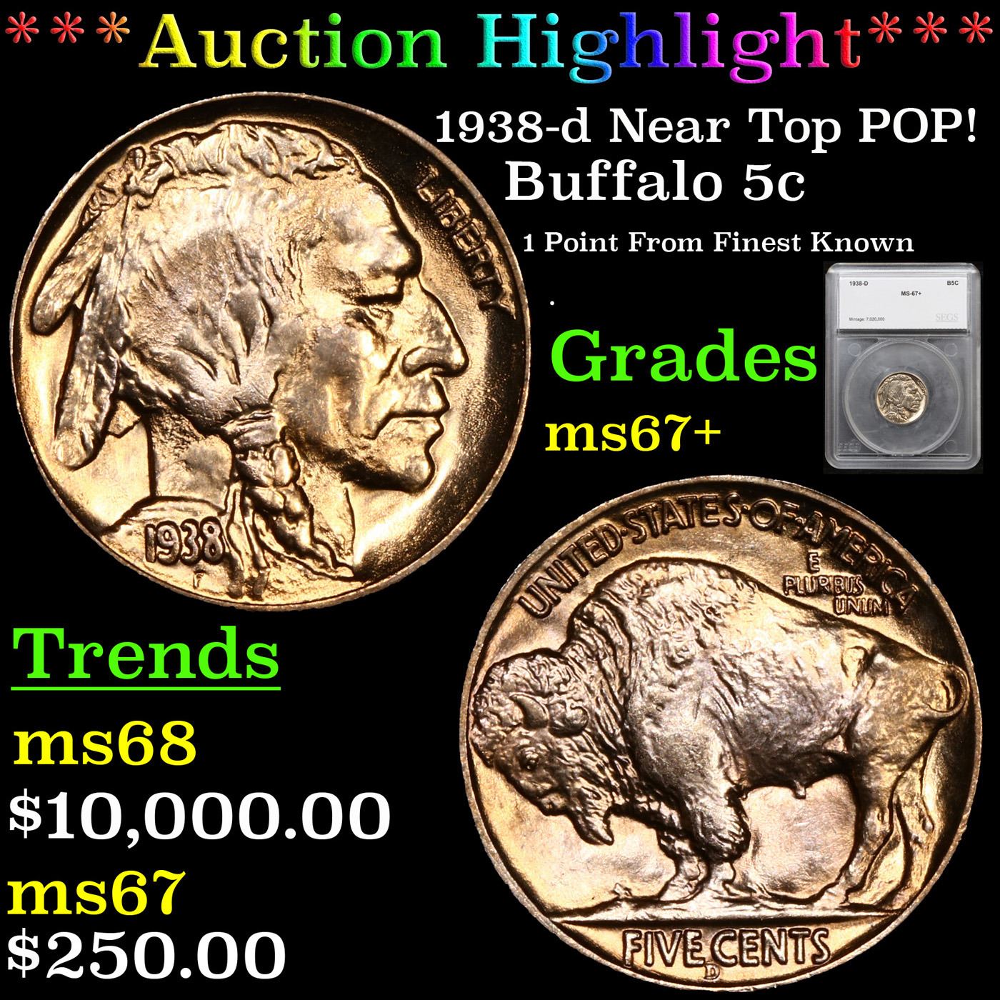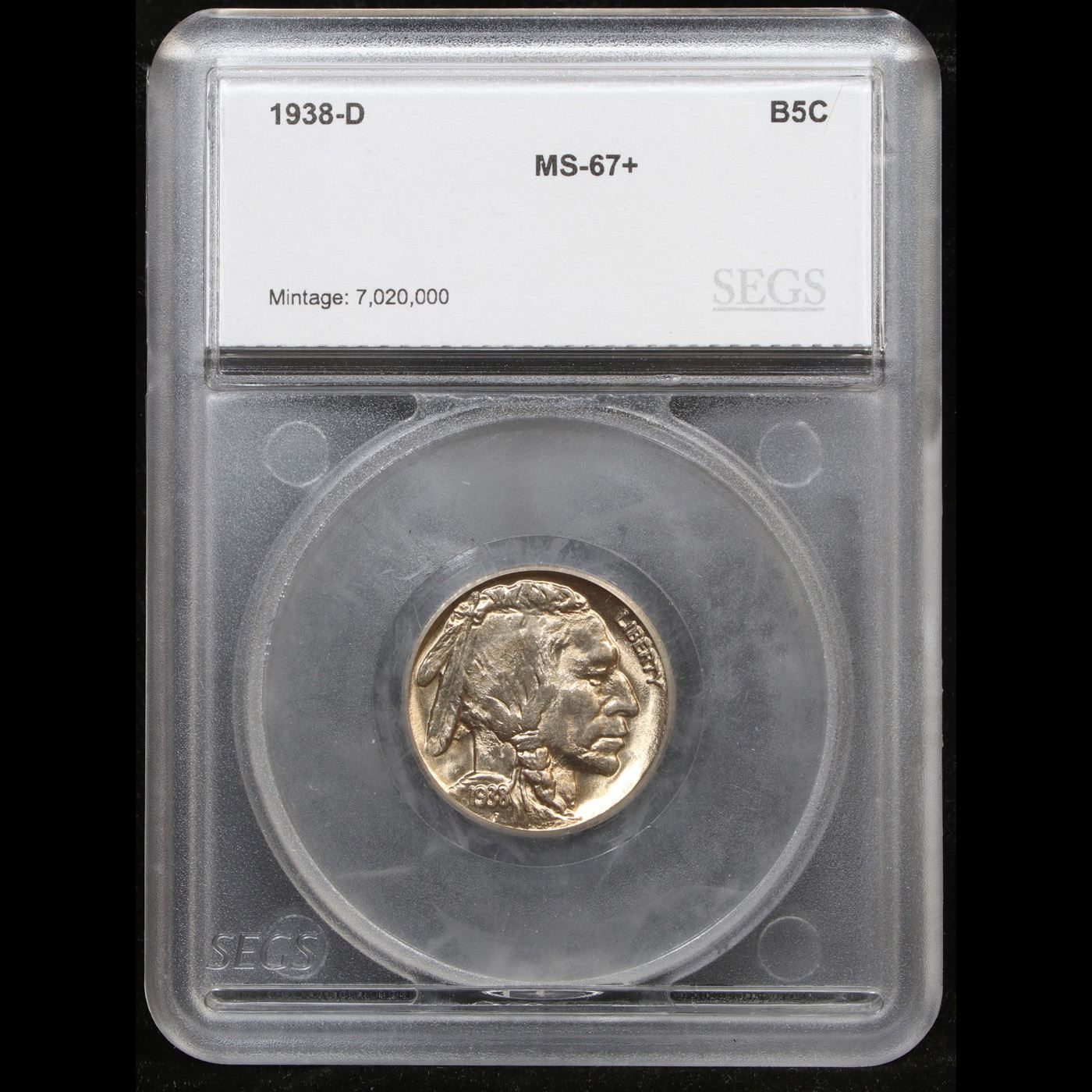 ***Auction Highlight*** 1938-d Near Top POP! Buffalo Nickel 5c Graded ms67+ By SEGS.