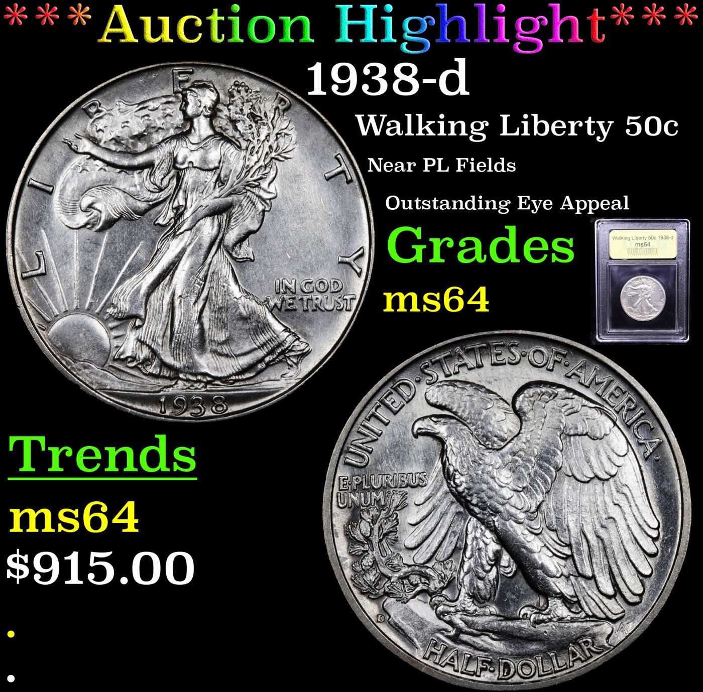 ***Auction Highlight*** 1938-d Walking Liberty Half Dollar 50c Graded Choice Unc By USCG (fc)
