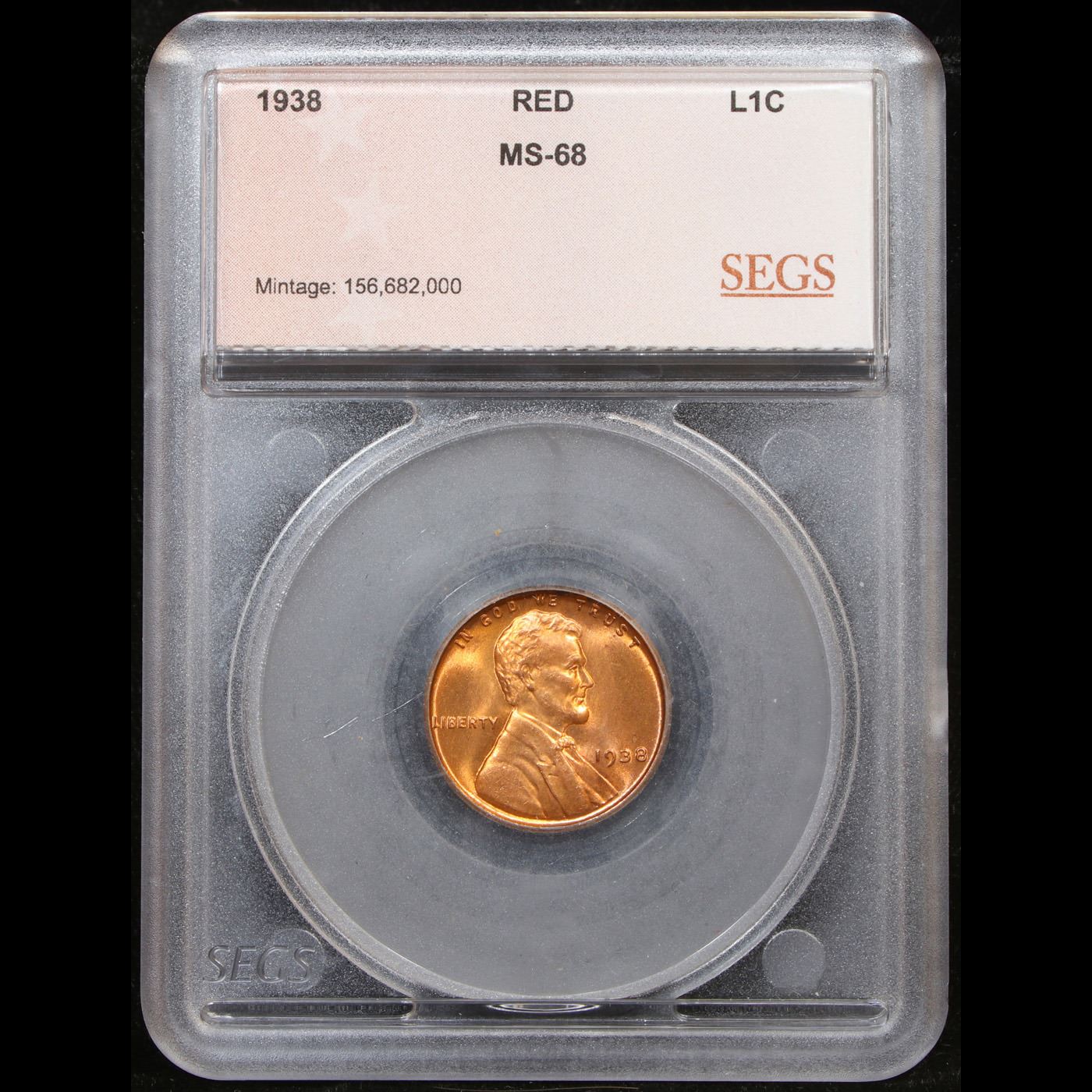 ***Auction Highlight*** 1938-p TOP POP! Lincoln Cent 1c Graded ms68 rd By SEGS.
