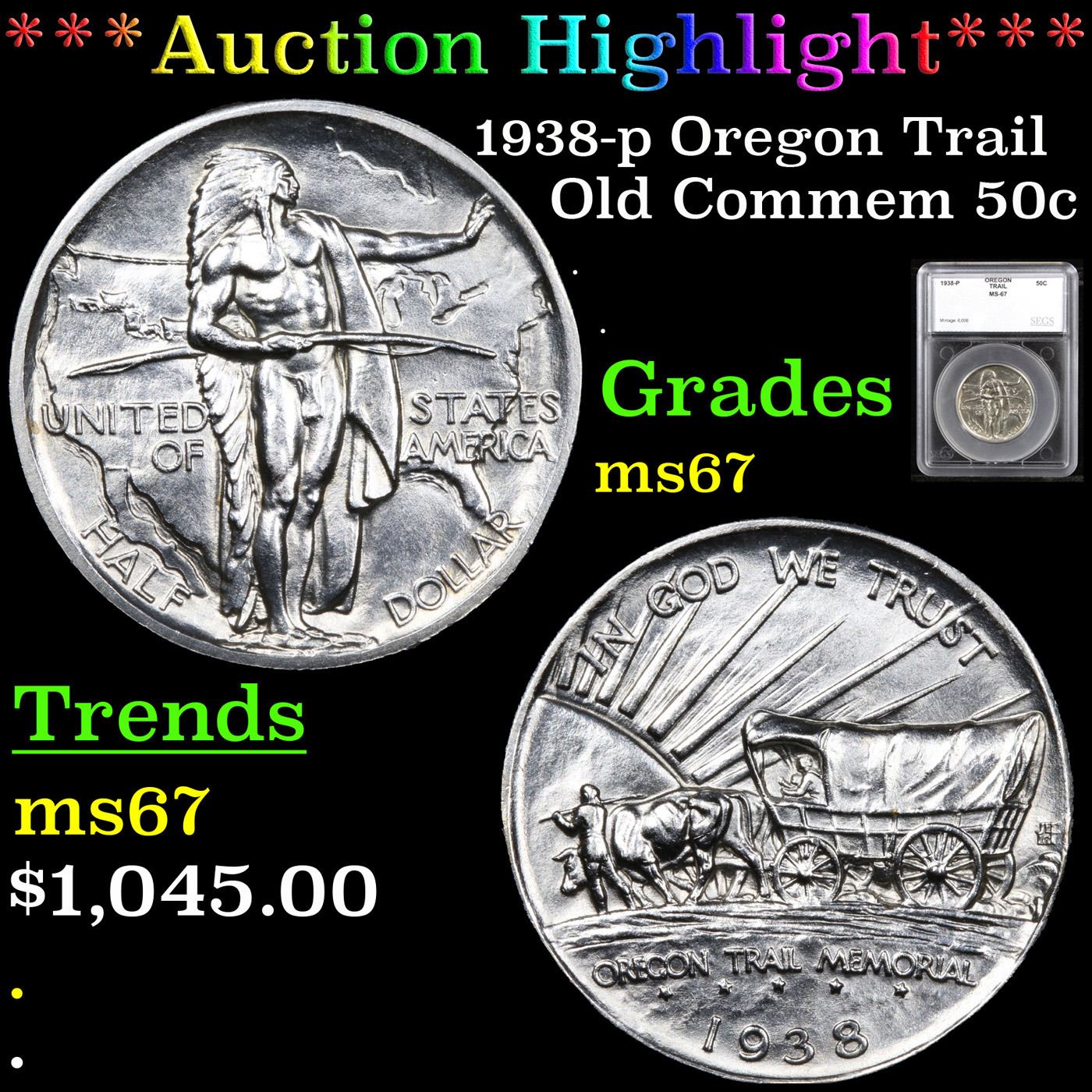 ***Auction Highlight*** 1938-p Oregon Trail Old Commem Half Dollar 50c Graded ms67 By SEGS.