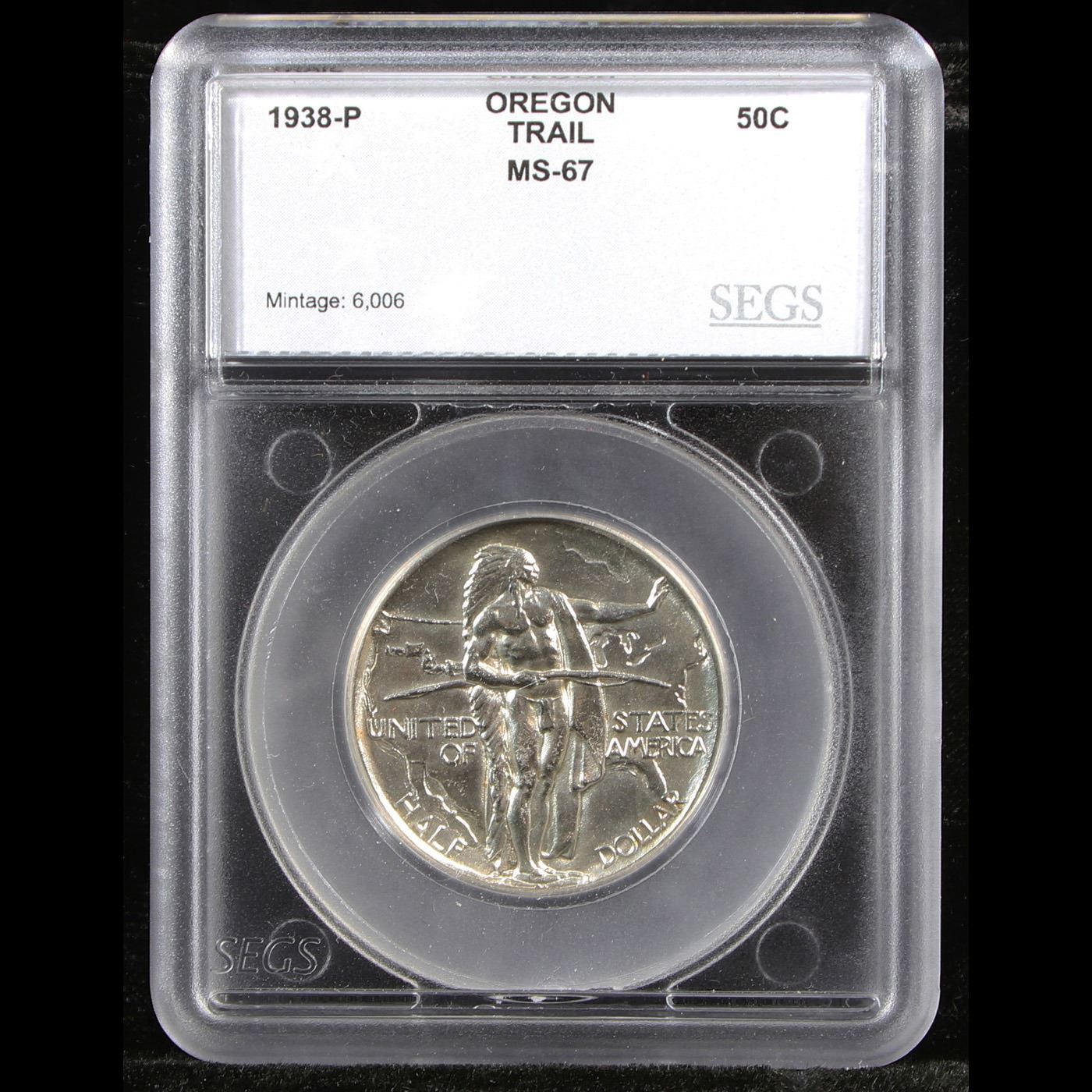 ***Auction Highlight*** 1938-p Oregon Trail Old Commem Half Dollar 50c Graded ms67 By SEGS (fc)